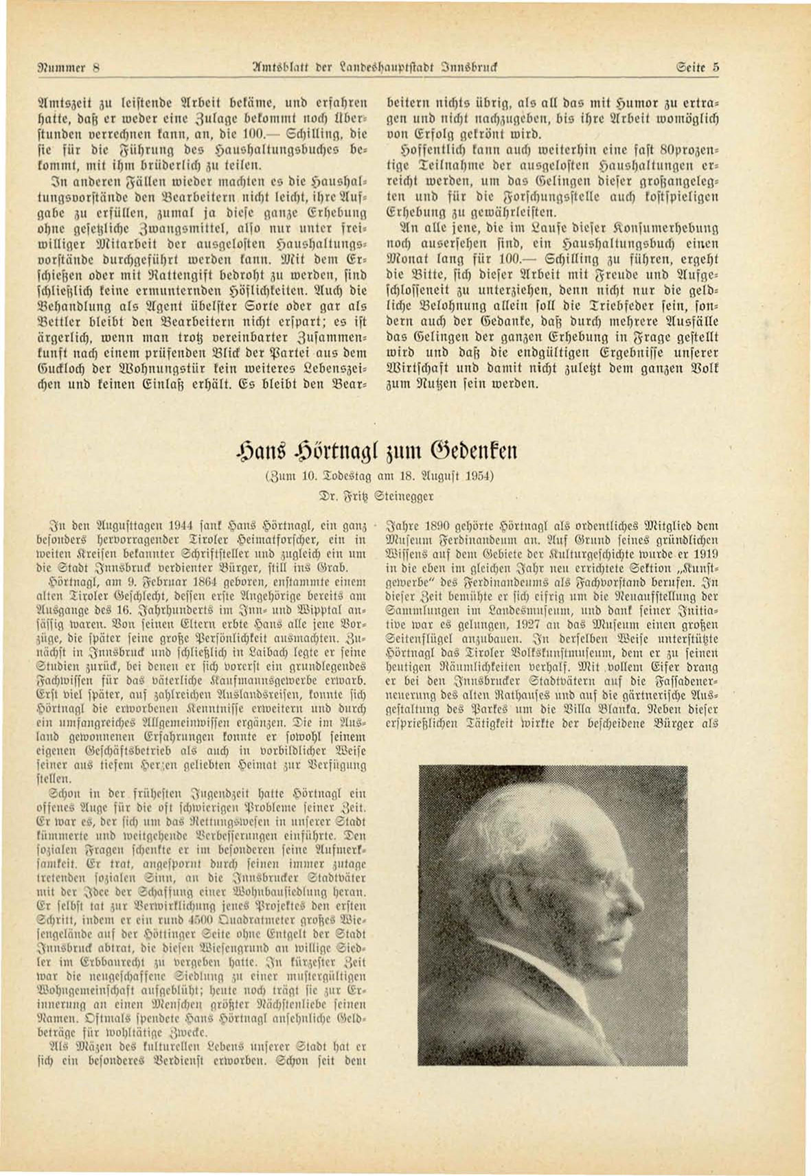 Hans Hörtnagl zum Gedenken