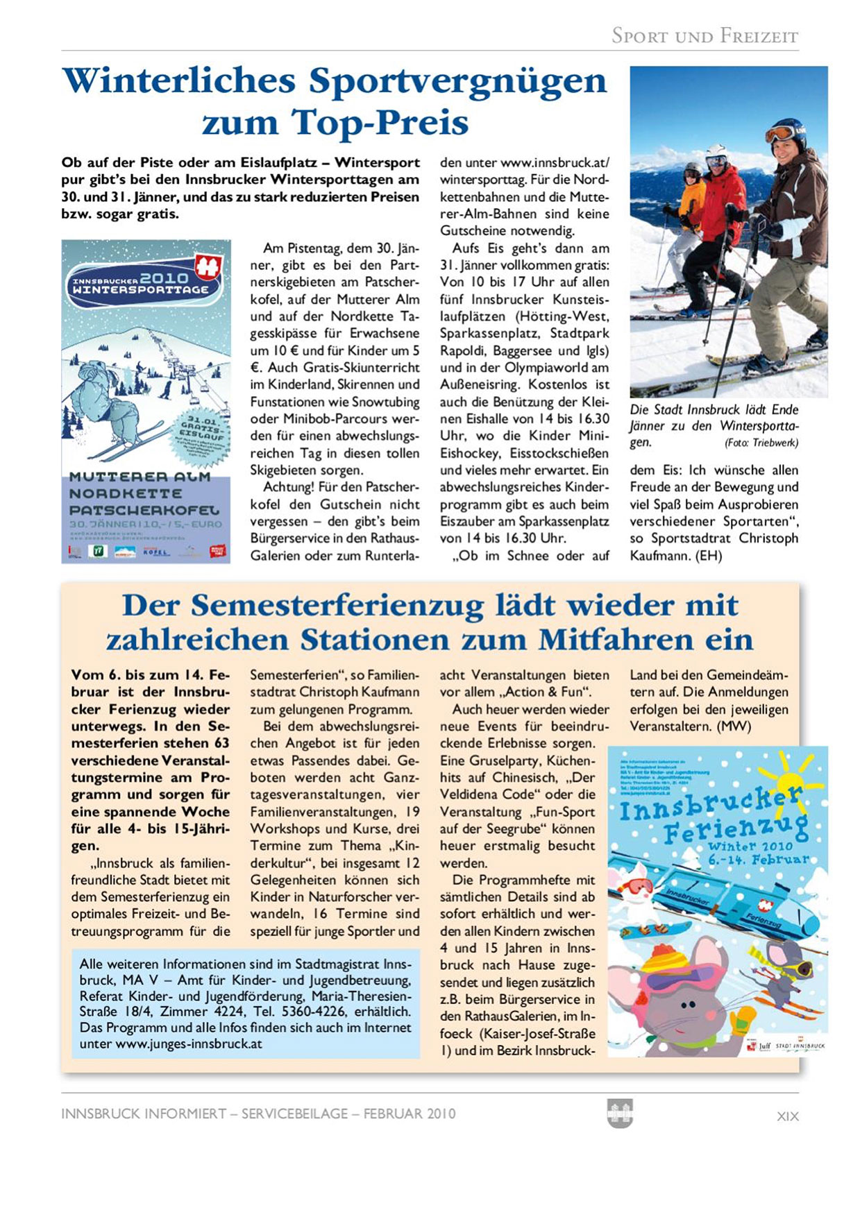 INNSBRUCK INFORMIERT - SERVICEBEILAGE — FEBRUAR 2010