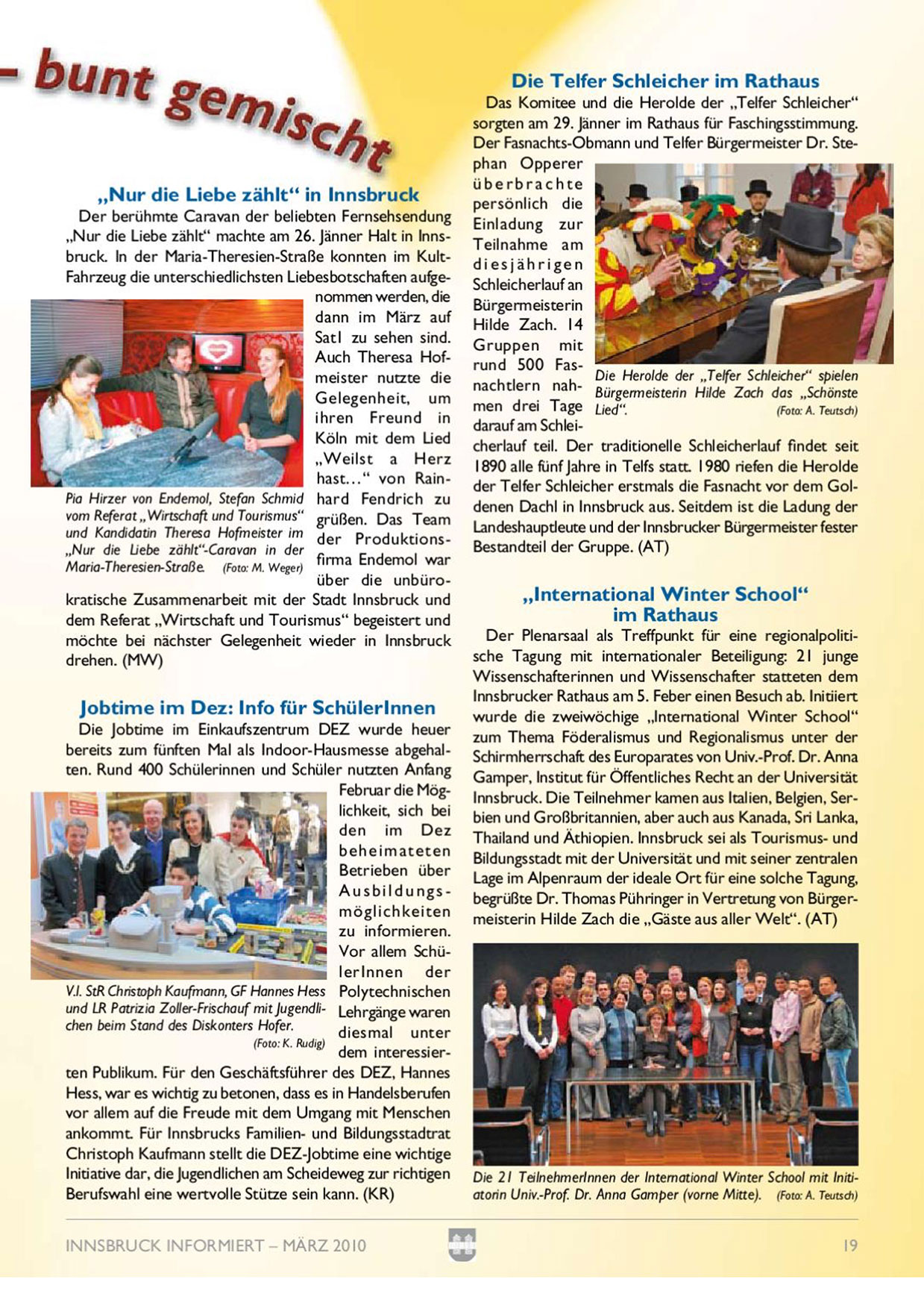 Das Komitee und die Herolde der „Telfer Schleicher“ sorgten am 29. Jänner im Rathaus für Faschingsstimmung. Der Fasnachts-Obmann und Telfer Bürgermeister Dr. Stephan Opperer überbrachte persönlich die Einladung zur Teilnahme am diesjährigen Schleicherlauf an Bürgermeisterin Hilde Zach. 14