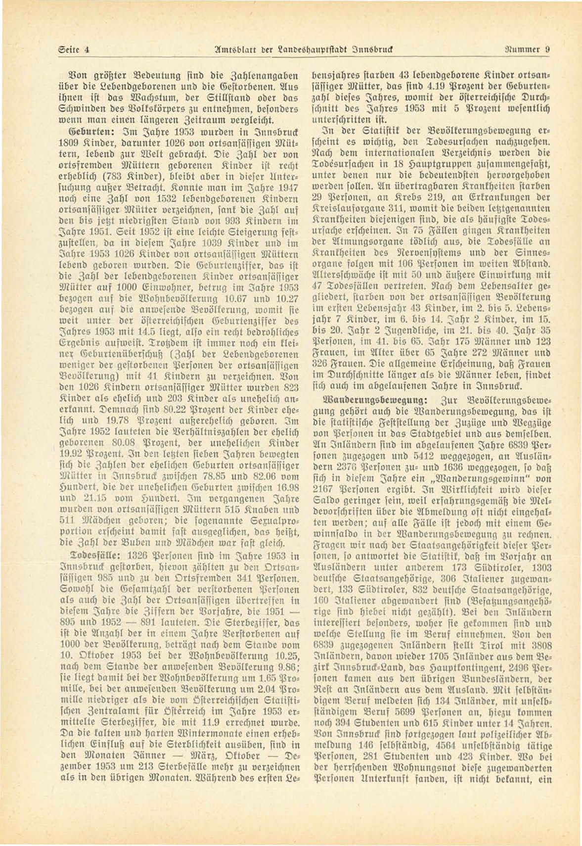 bensjahres starben 43 lebendgeborene Kinder ortsansässiger Mütter, das sind 4.19 Prozent der Geburtenzahl dieses Jahres, womit der österreichische Durchschnitt des Jahres 1953 mit 5 Prozent wesentlich