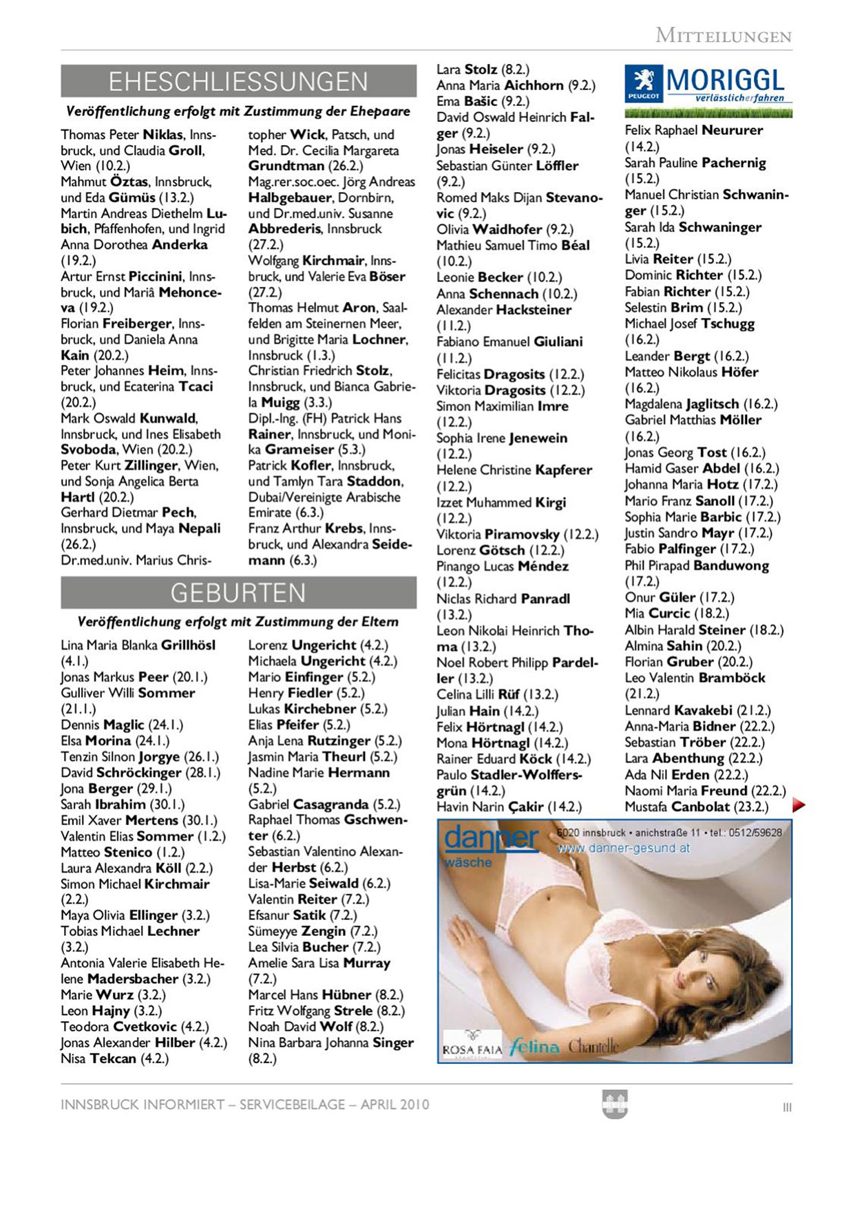 INNSBRUCK INFORMIERT - SERVICEBEILAGE —APRIL 2010