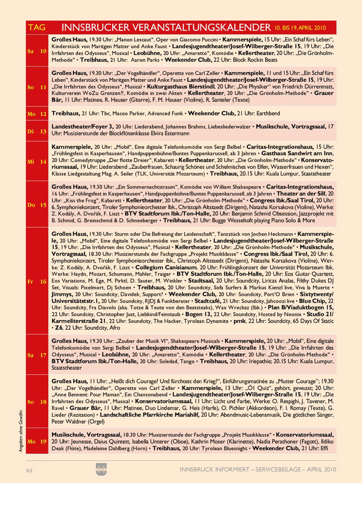 INNSBRUCK INFORMIERT — SERVICEBEILAGE—APRI 2010