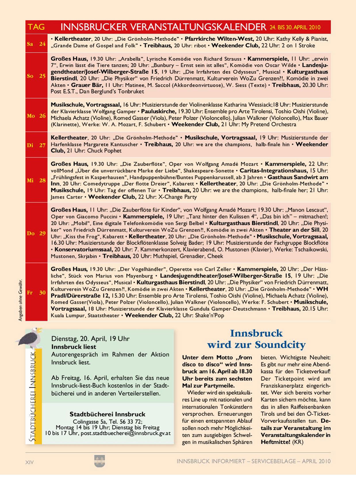 INNSBRUCK INFORMIERT — SERVICEBEILAGE—APRI 2010