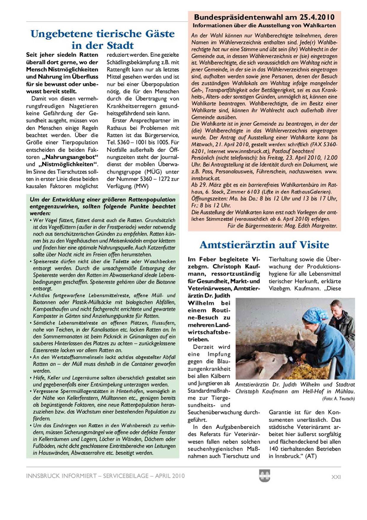 INNSBRUCK INFORMIERT - SERVICEBEILAGE —APRIL 2010