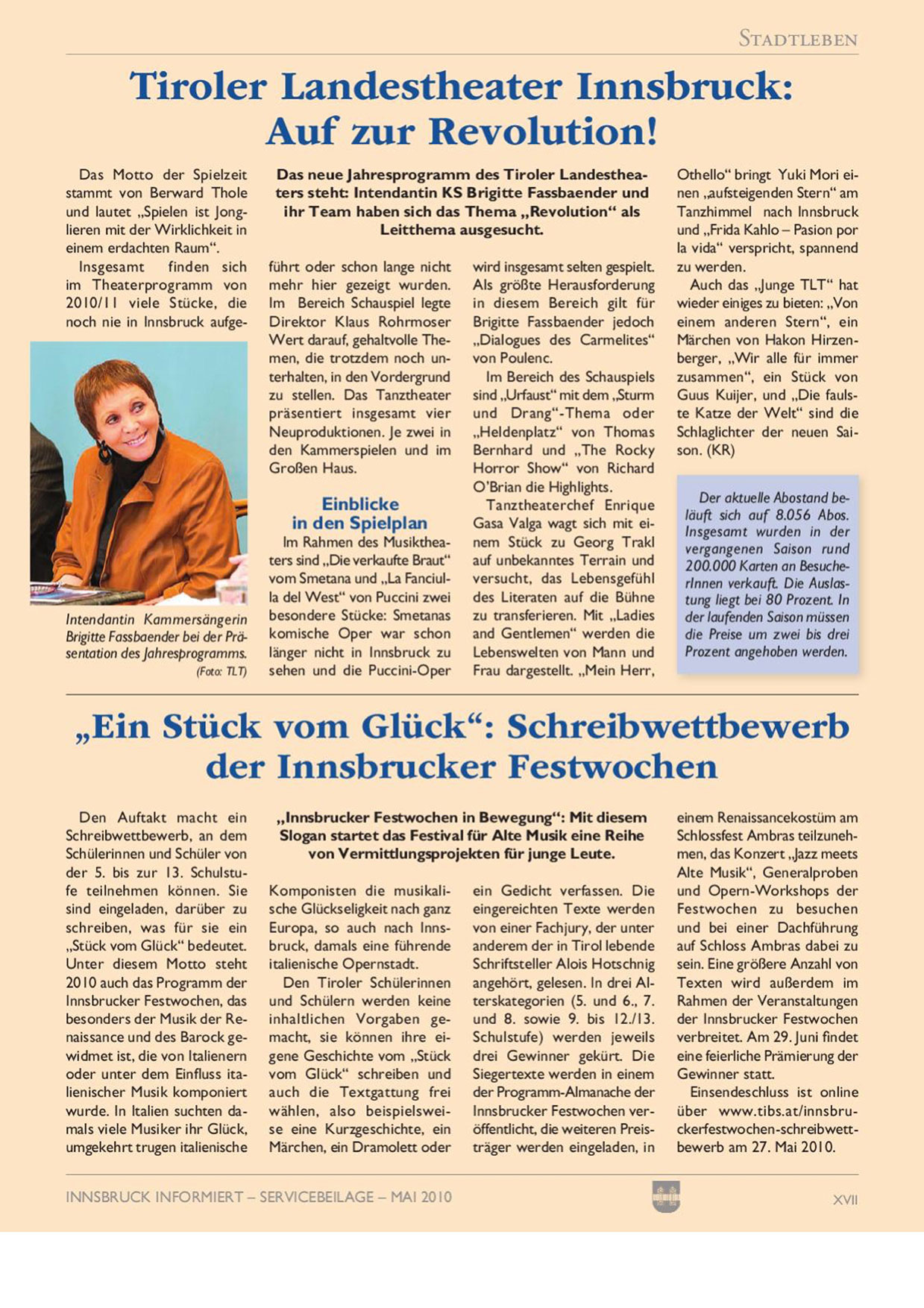 INNSBRUCK INFORMIERT - SERVICEBEILAGE— MAl 2010