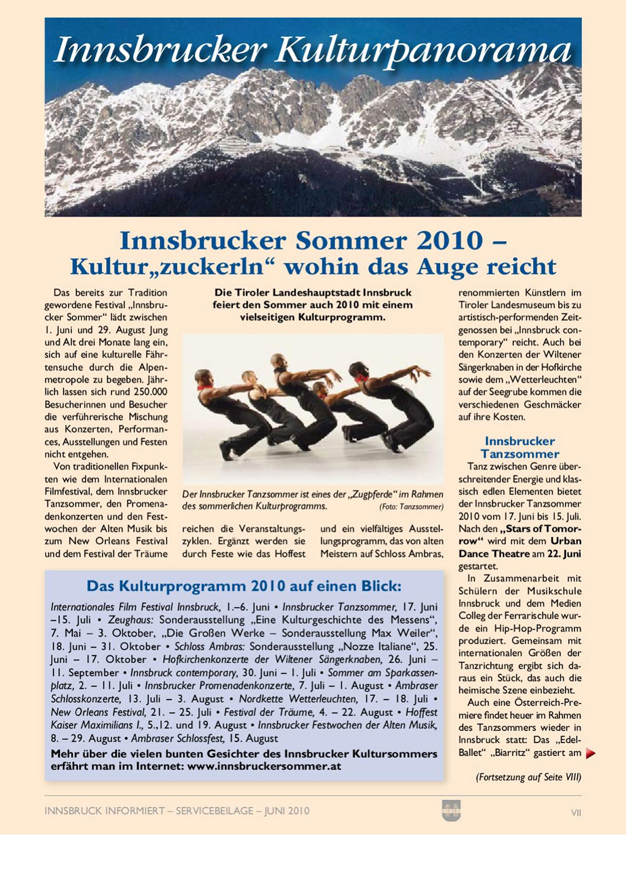 Innsbrucker Sommer 2010 — Kultur„zuckerln“ wohin das Auge reicht