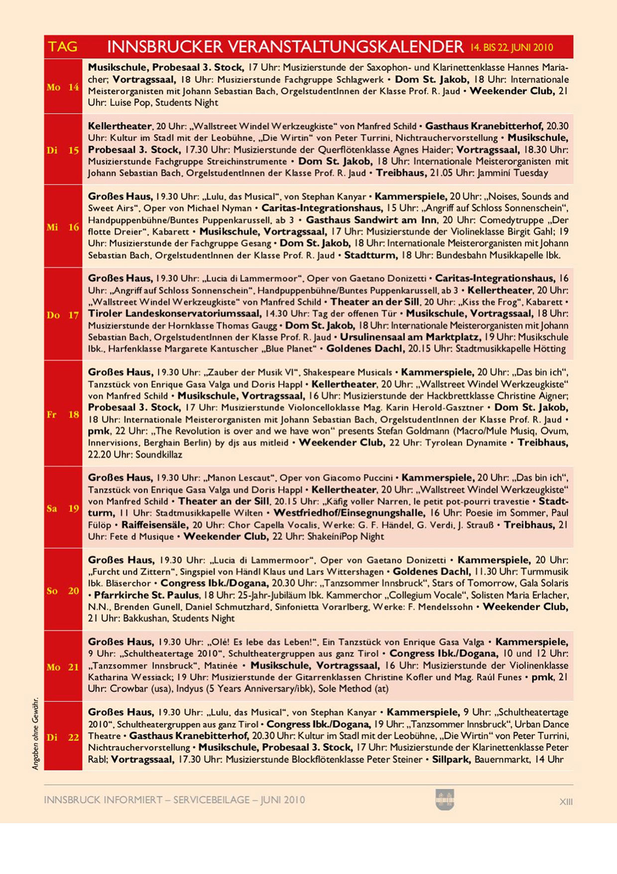 INNSBRUCK INFORMIERT - SERVICEBEILAGE — JUN 2010