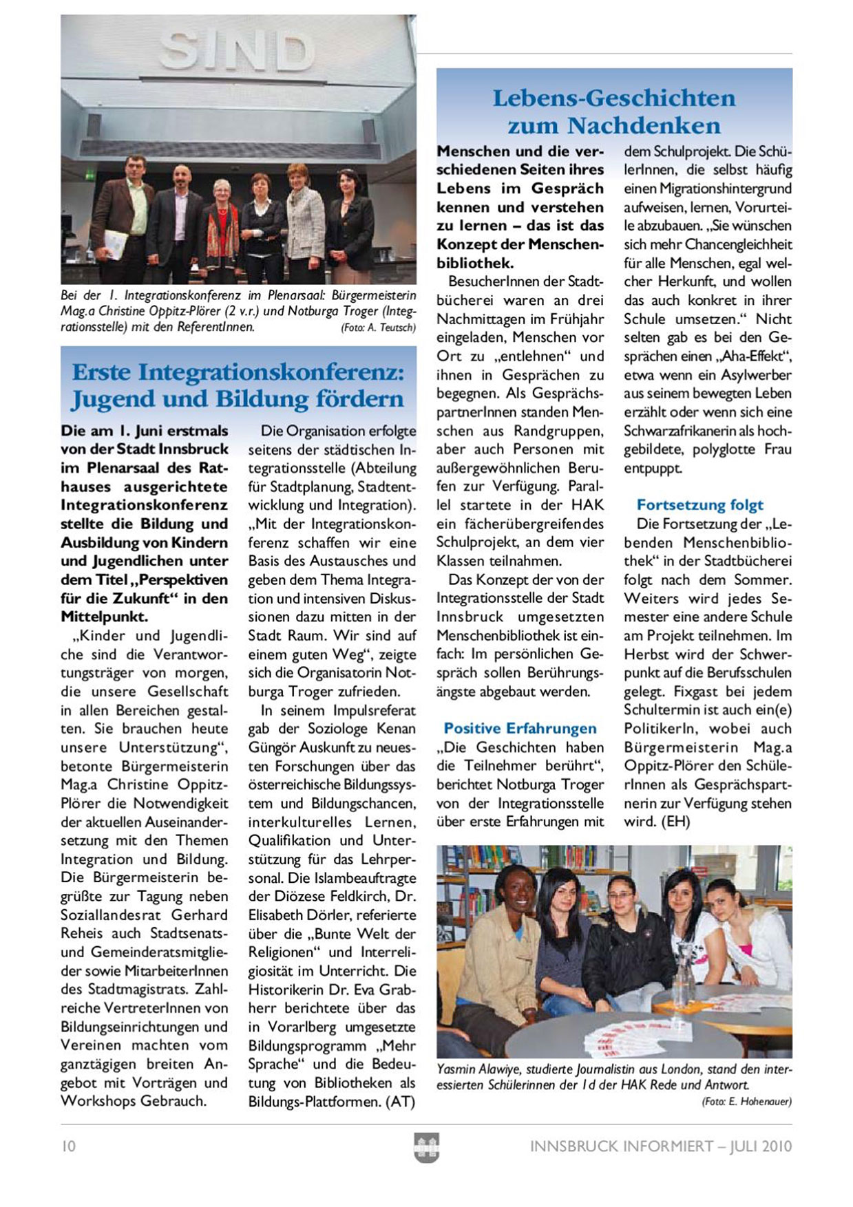 von der Stadt Innsbruck im Plenarsaal des Rathauses ausgerichtete Integrationskonferenz stellte die Bildung und Ausbildung von Kindern und Jugendlichen unter dem Titel „Perspektiven für die Zukunft“ in den Mittelpunkt.