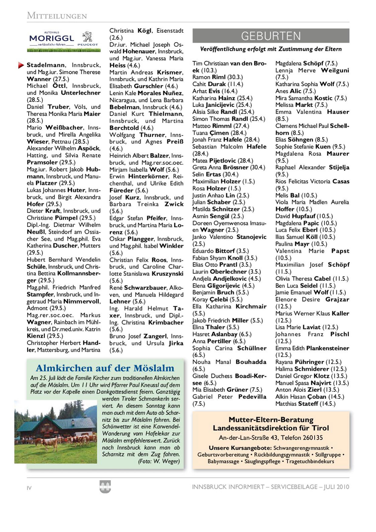 INNSBRUCK INFORMIERT — SERVIGEBELAGE—JULI 2010