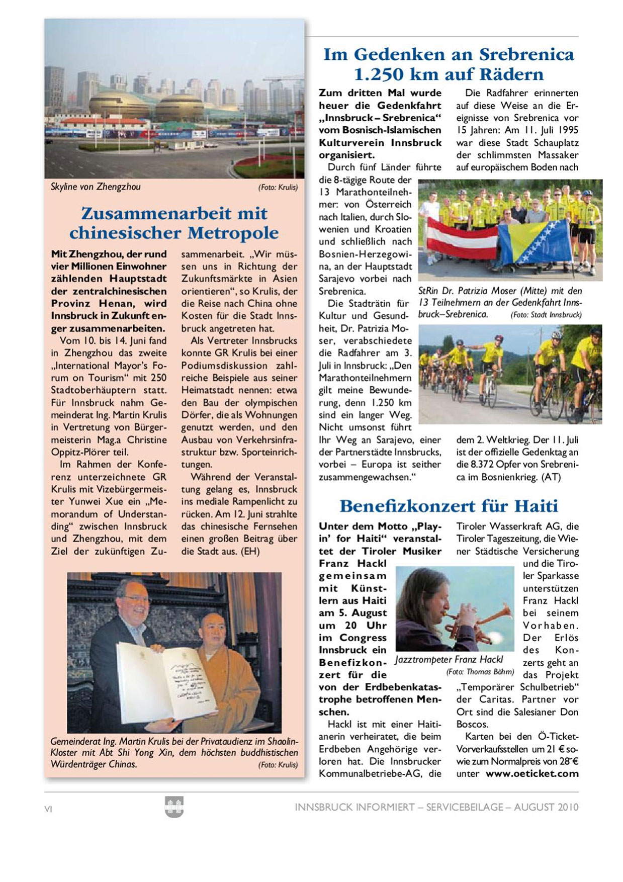INNSBRUCK INFORMIERT — SERVICEBEILAGE- AUGUST 2010