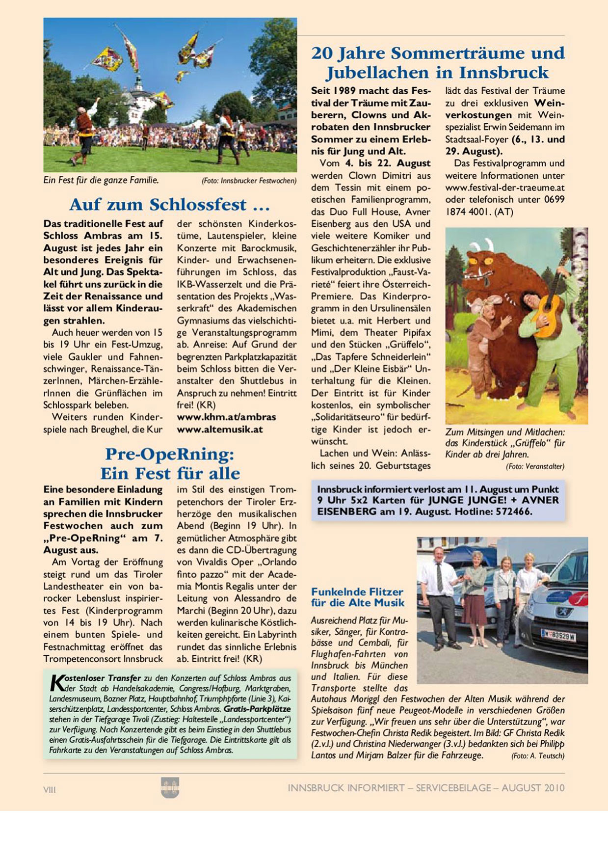 INNSBRUCK INFORMIERT - SERVICEBEILAGE- AUGUST 2010