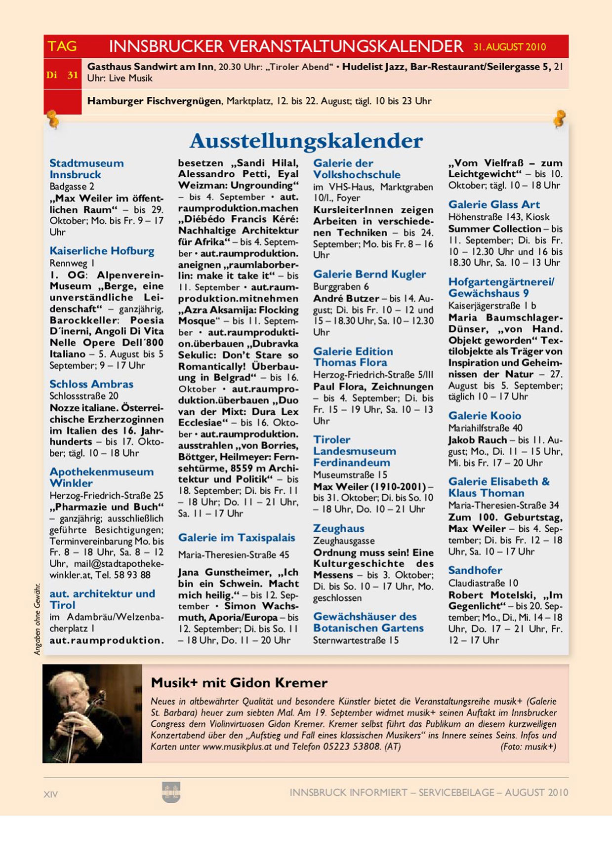 INNSBRUCK INFORMIERT — SERVICEBEILAGE— AUGUST 2010
