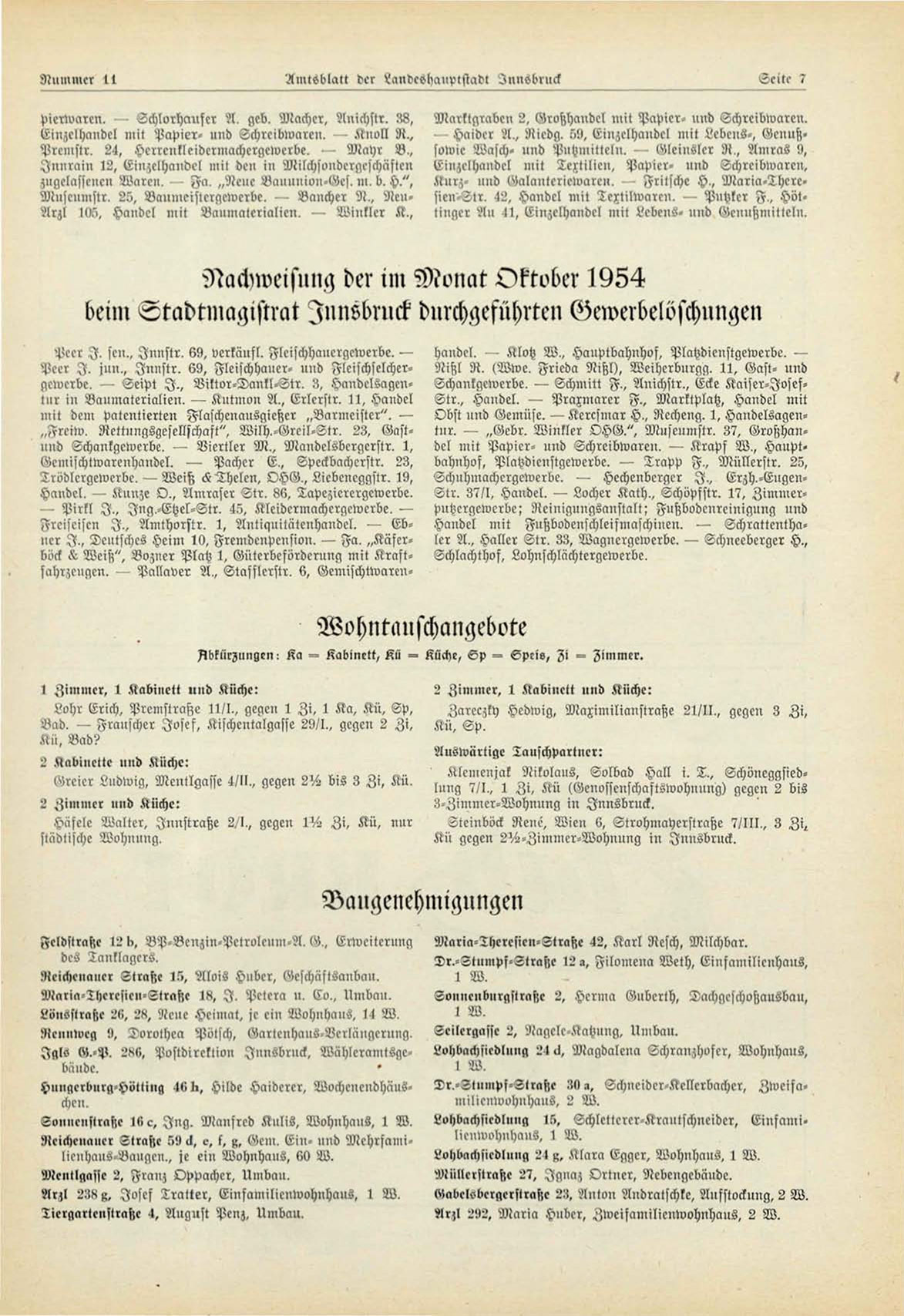 beiln Stadtmaqisttat Innsbruck dnrchgeführtcn Gewerbelöschnngen