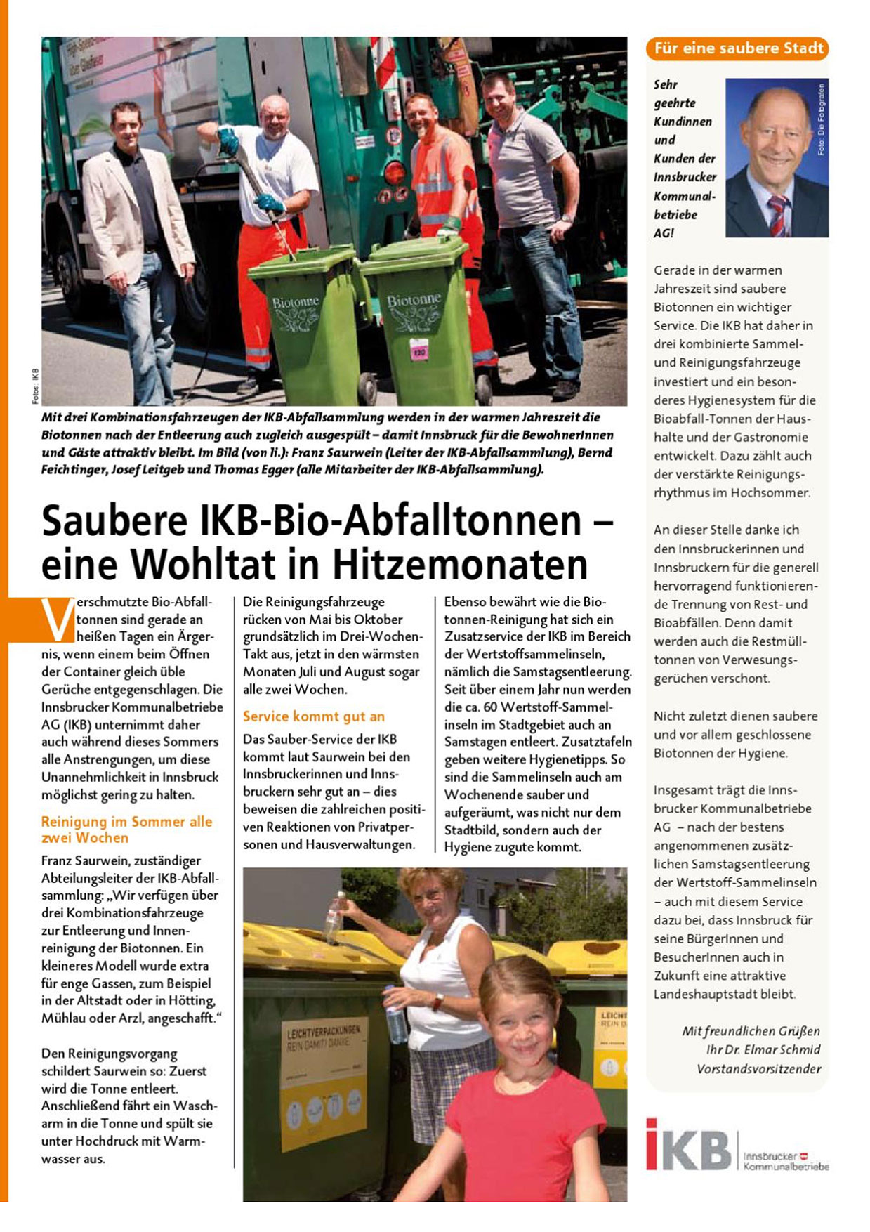 Insgesamt trägt die Innsbrucker Kommunalbetriebe Ad — nach der bestens angenommenen zusätzlichen Samstagsentieerung der Wertstoff-Sammelinseln — auch mit diesem Service dazu bei, dass innsbruck für seine Bürgerinnen und Besucherinnen auch in Zukunft eine attraktive Landeshauptstadt bleibt.