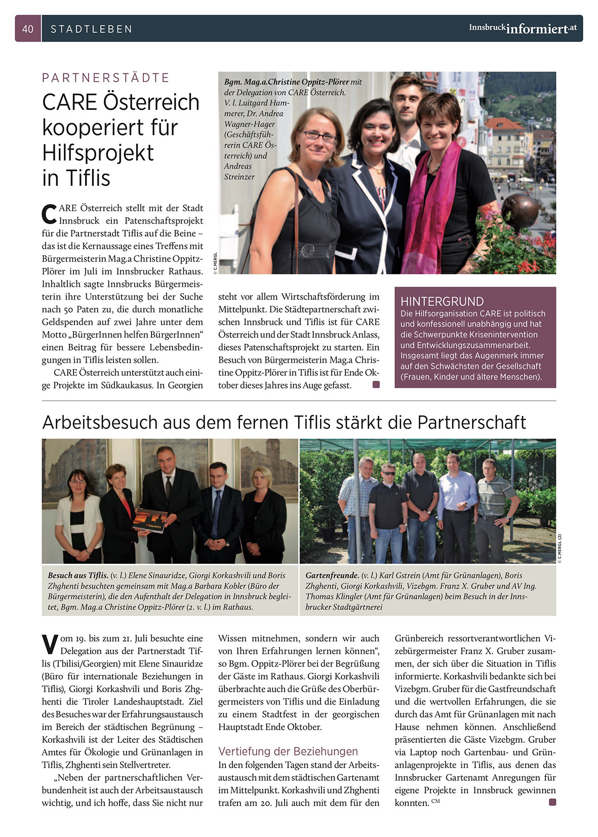 Mittelpunkt. Die Städtepartnerschaft zwischen Innsbruck und Tiflis ist für CARE