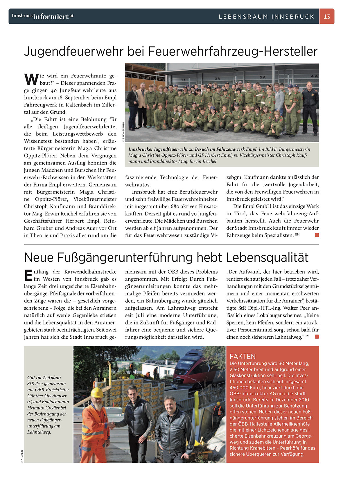 Innsbrucker Jugendfeuerwehr zu Besuch im Fahrzeugwerk Empl. Im Bild li. Bürgermeisterin