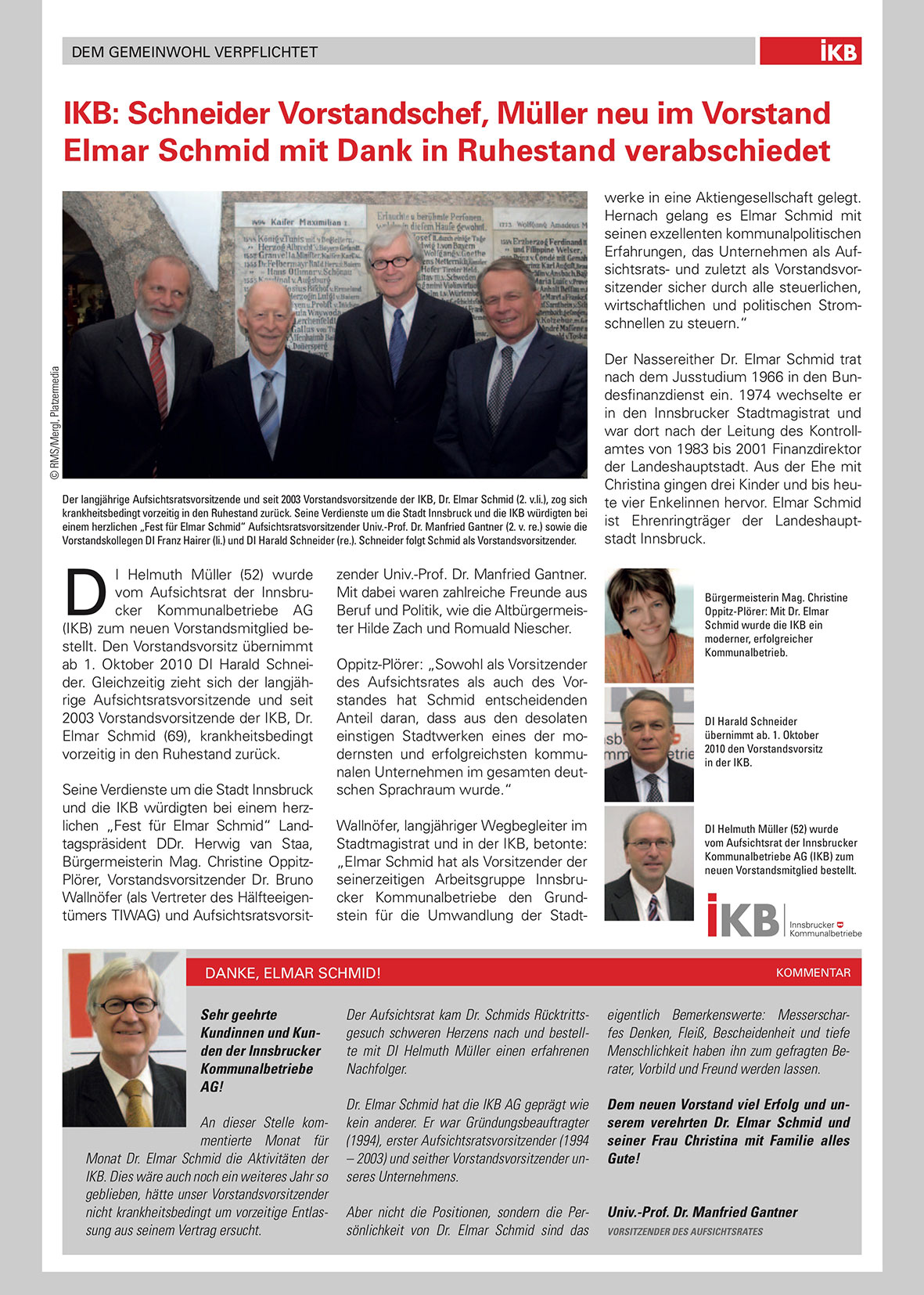 krankheitsbedingt vorzeitig in den Ruhestand zurück. Seine Verdienste um die Stadt Innsbruck und die IKB würdigten bei