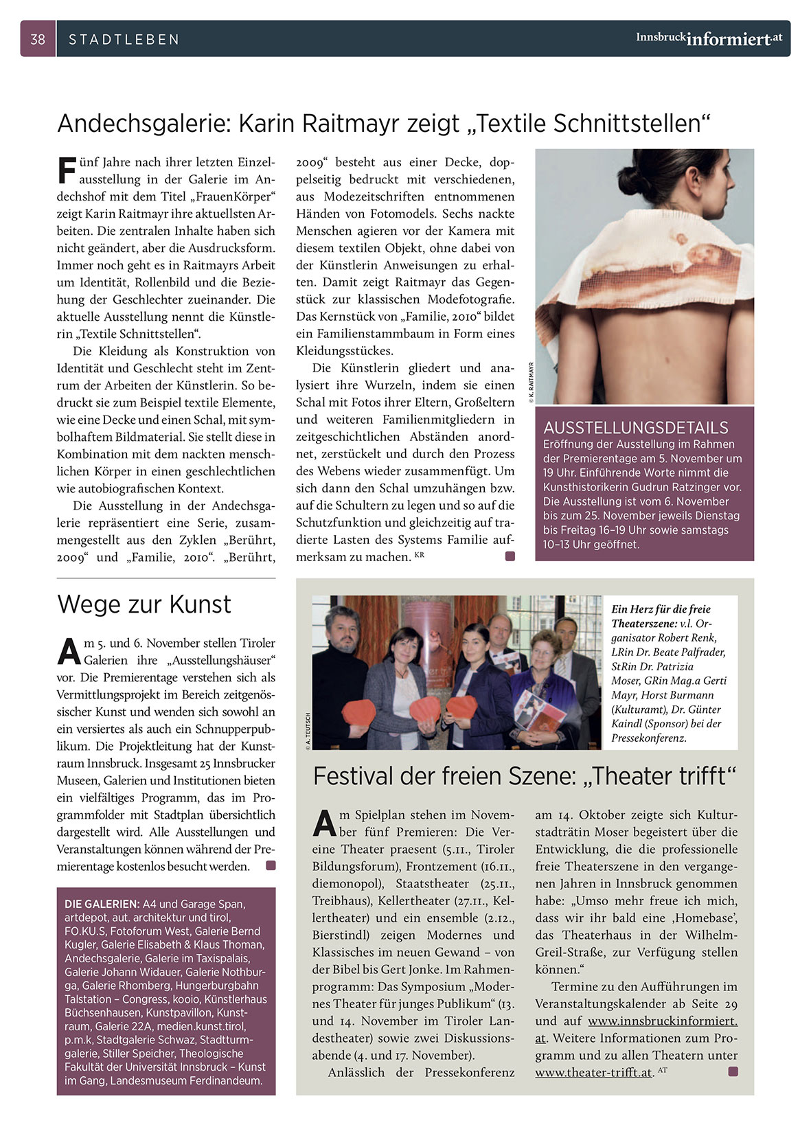m Spielplan stehen im November fünf Premieren: Die Vereine Theater praesent (5.11., Tiroler
