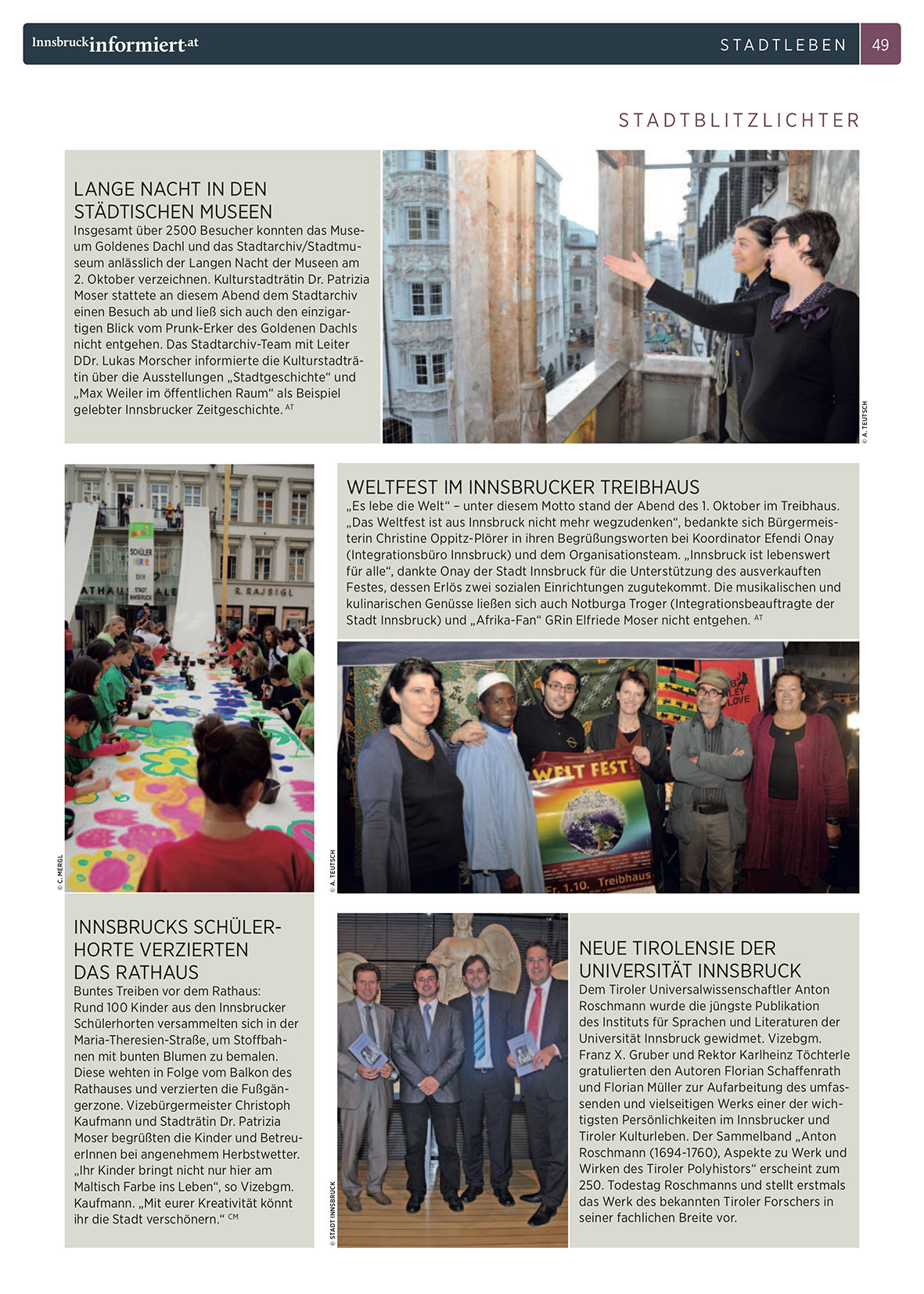 Insgesamt über 2500 Besucher konnten das Museum Goldenes Dachl und das Stadtarchiv/Stadtmuseum anlässlich der Langen Nacht der Museen am