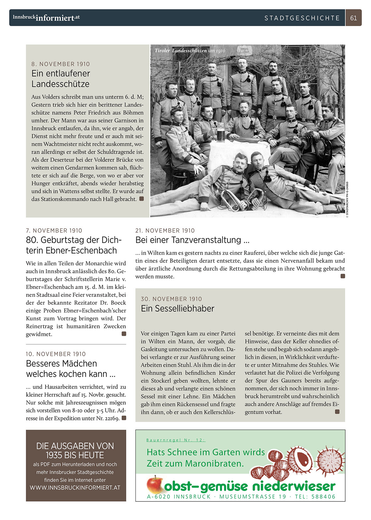 auch in Innsbruck anlässlich des 80. Geburtstages der Schriftstellerin Marie v.