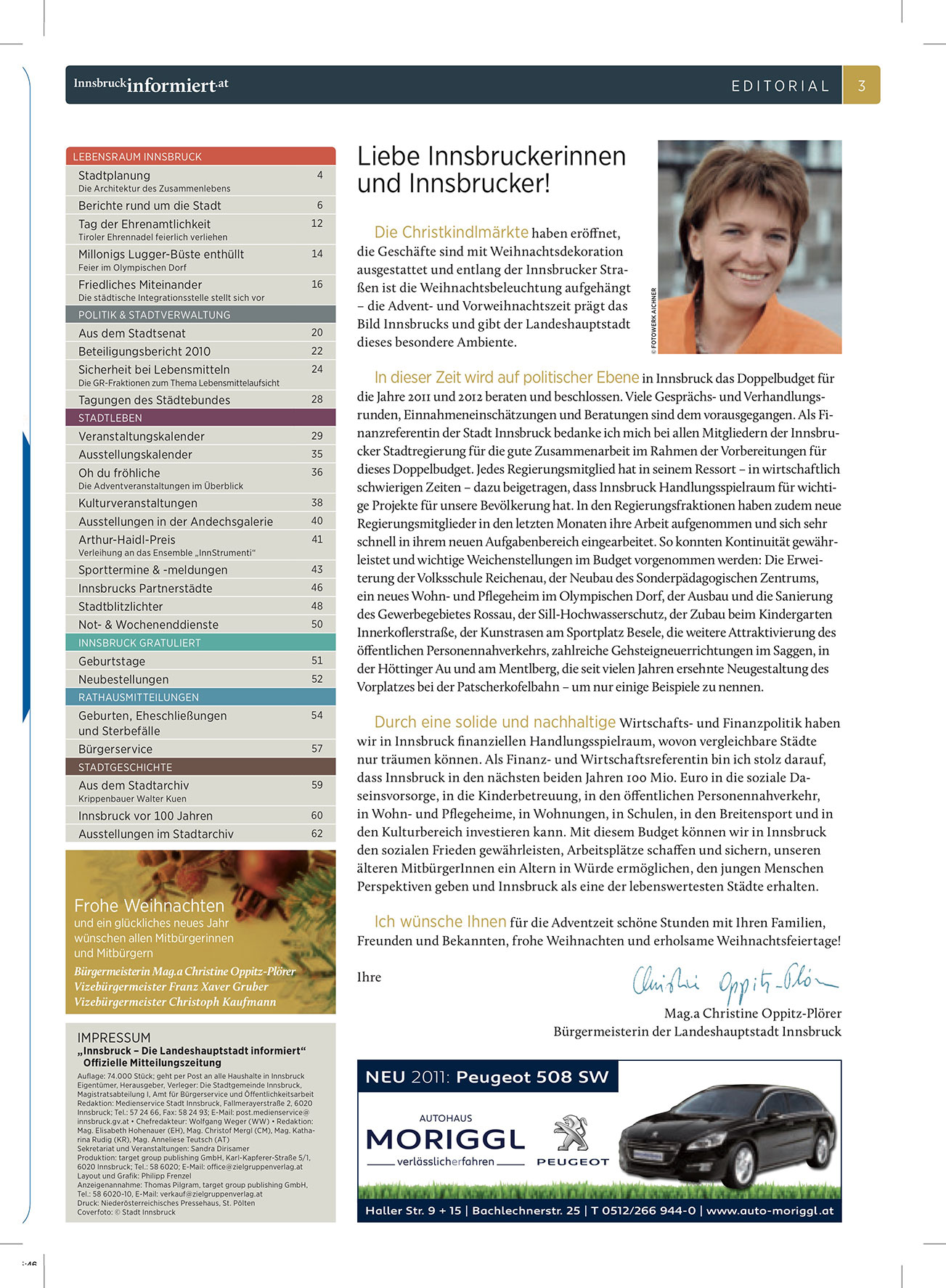 Auflage: 74.000 Stück; geht per Post an alle Haushalte in Innsbruck