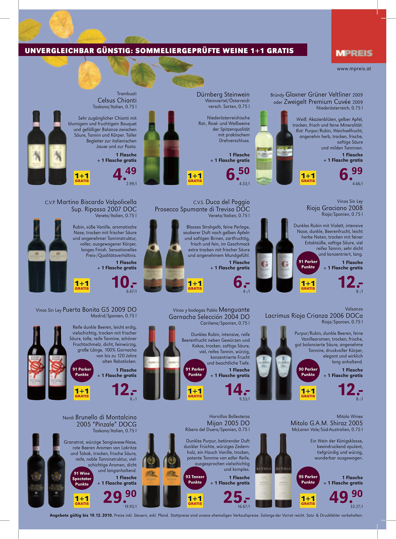 Angebote gültig bis 19.12. 2010. Preise inkl. Steuern, exkl. Pfand. Stattpreise sind unsere ehemaligen Verkaufspreise. Solange der Vorrat reicht. Satz- & Druckfehler vorbehalten.