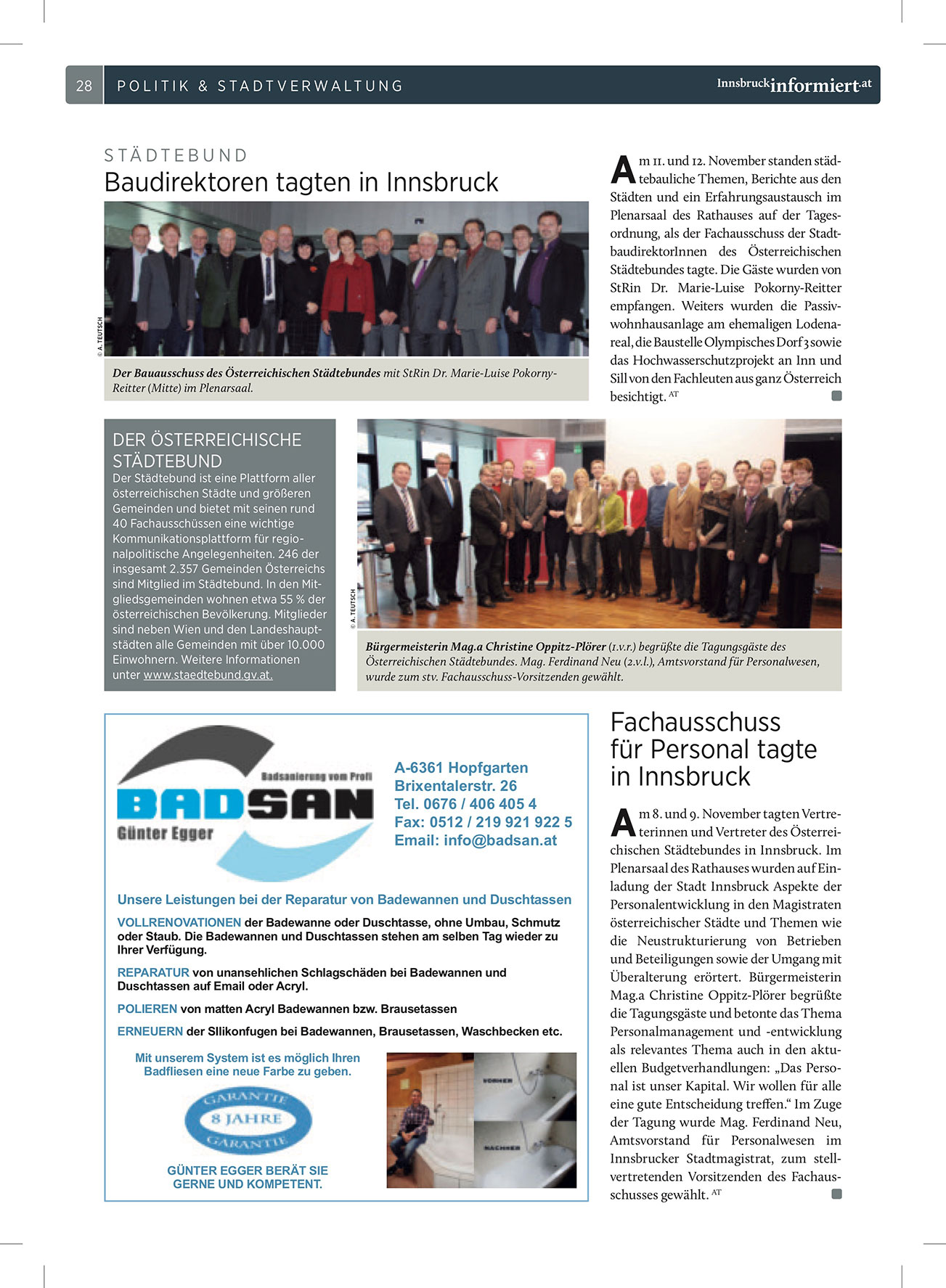 Innsbrucker Stadtmagistrat, zum stellvertretenden Vorsitzenden des Fachausschusses gewählt. AT