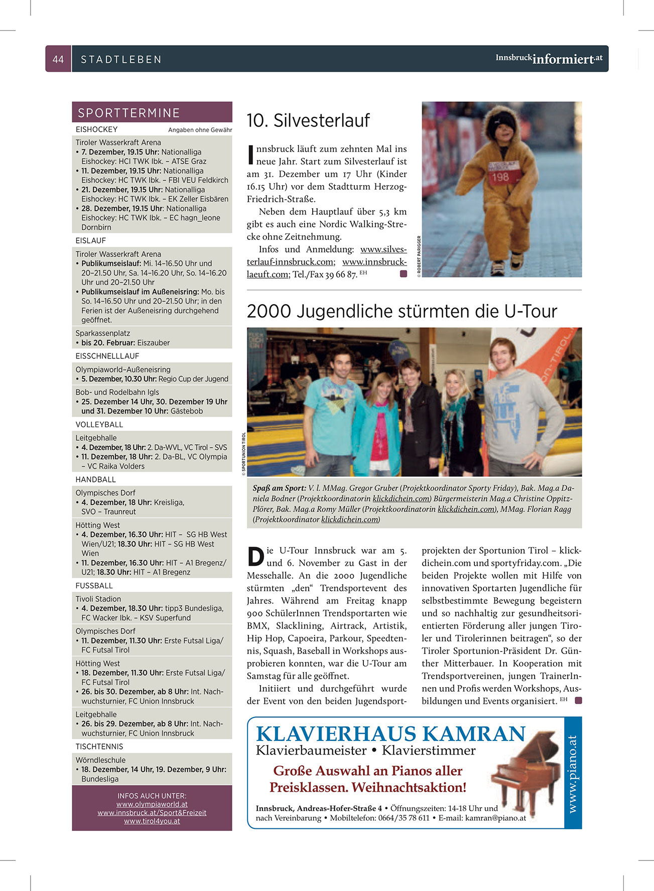 projekten der Sportunion Tirol – klickdichein.com und sportyfriday.com. „Die