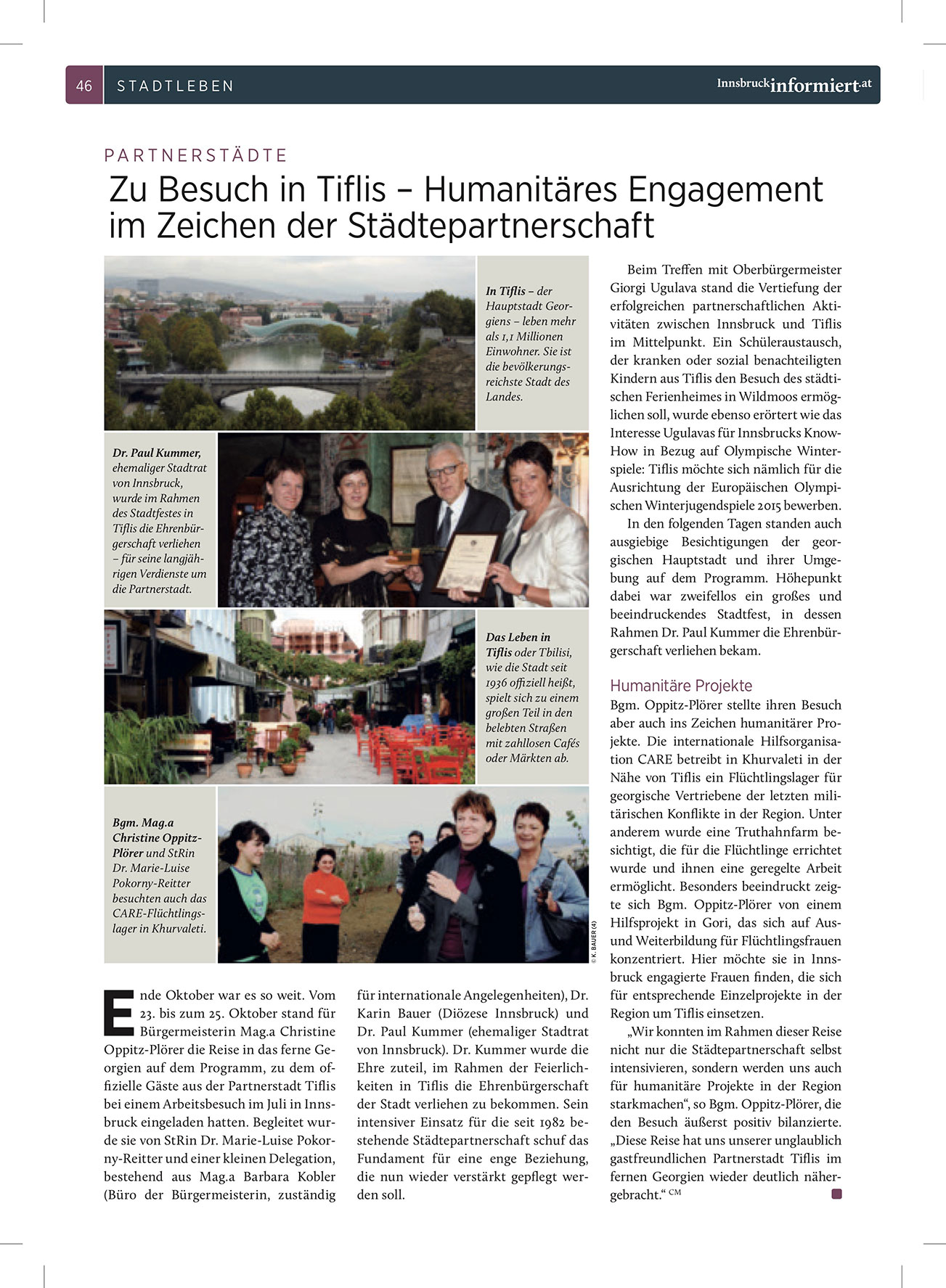erfolgreichen partnerschaftlichen Aktivitäten zwischen Innsbruck und Tiflis