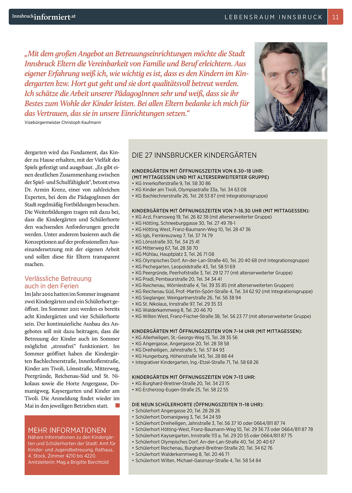 Innsbruck Eltern die Vereinbarkeit von Familie und Beruf erleichtern. Aus