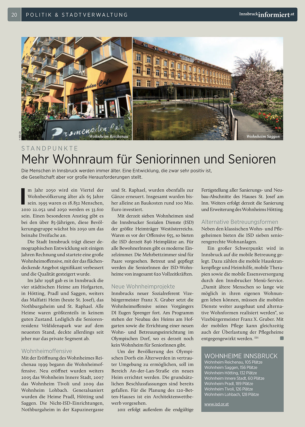 Die Menschen in Innsbruck werden immer älter. Eine Entwicklung, die zwar sehr positiv ist,