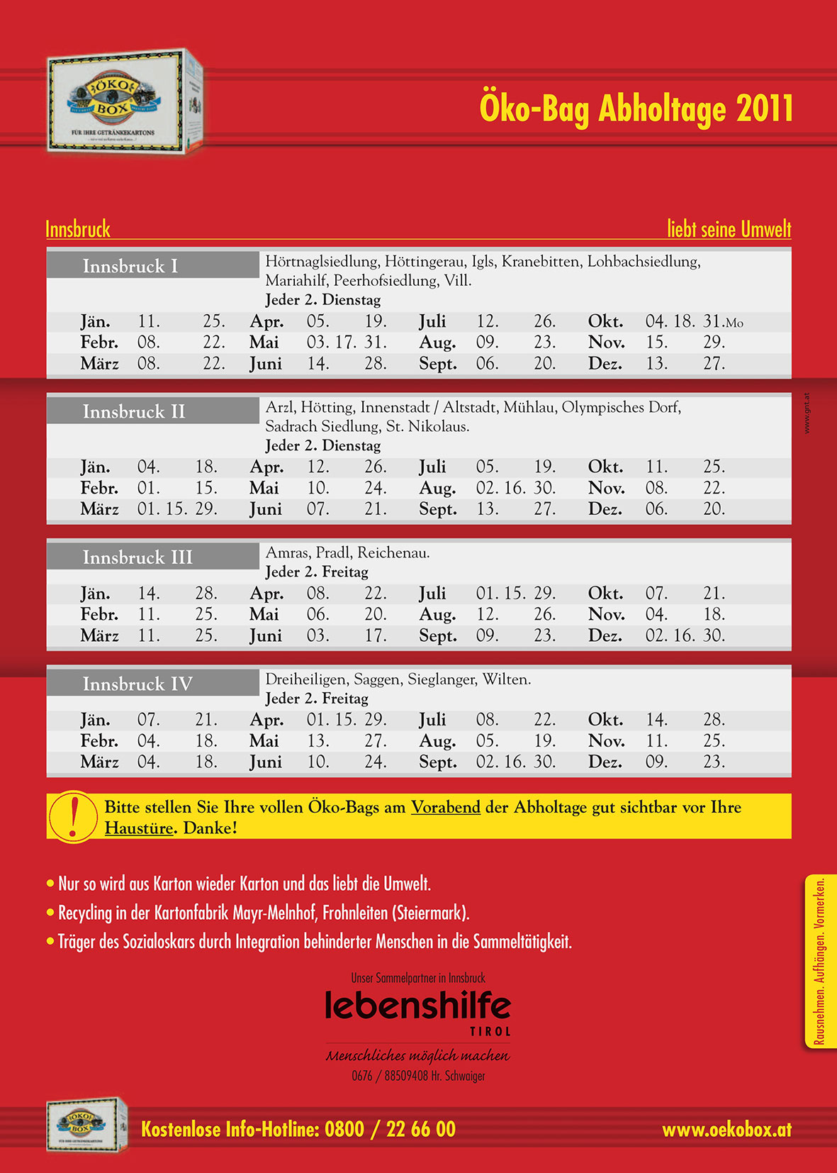 Öko-Bag Abholtage 2011