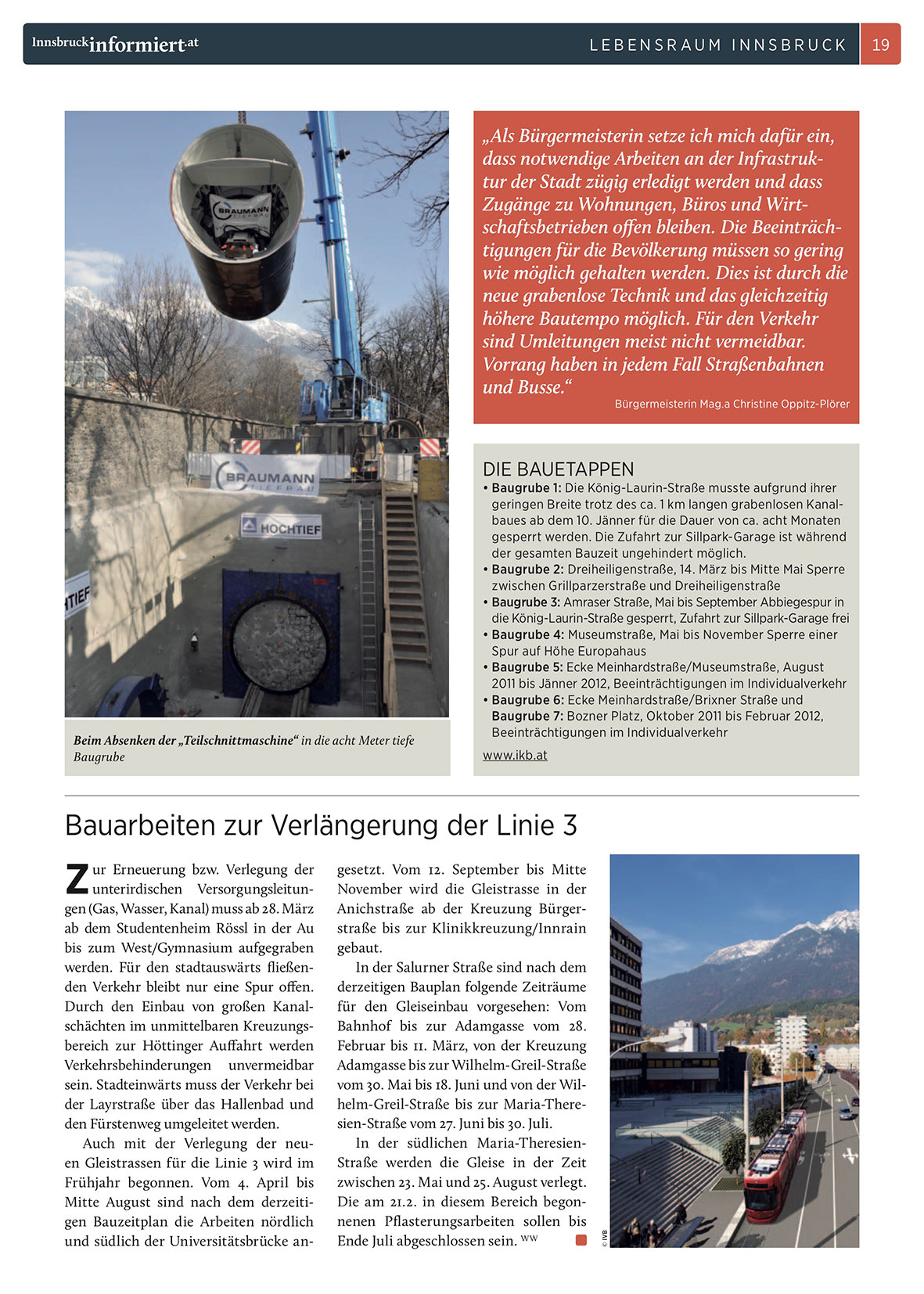 geringen Breite trotz des ca. 1 km langen grabenlosen Kanalbaues ab dem 10. Jänner für die Dauer von ca. acht Monaten