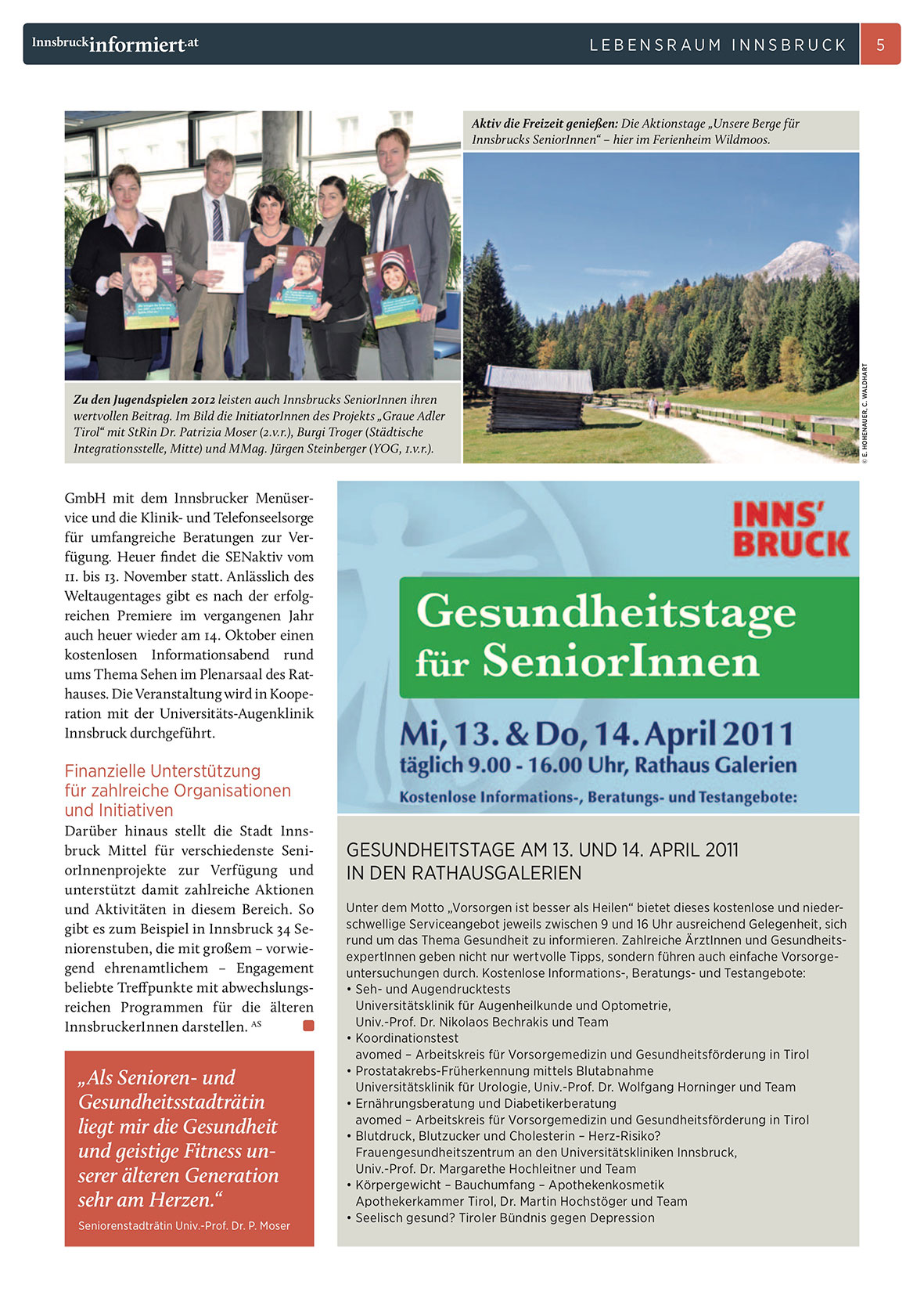 Zu den Jugendspielen 2012 leisten auch Innsbrucks SeniorInnen ihren