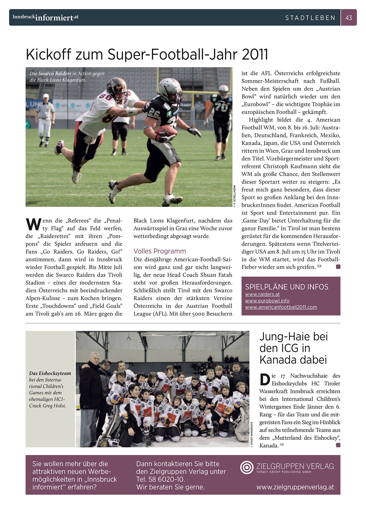 Sport so großen Anklang bei den InnsbruckerInnen findet. American Football