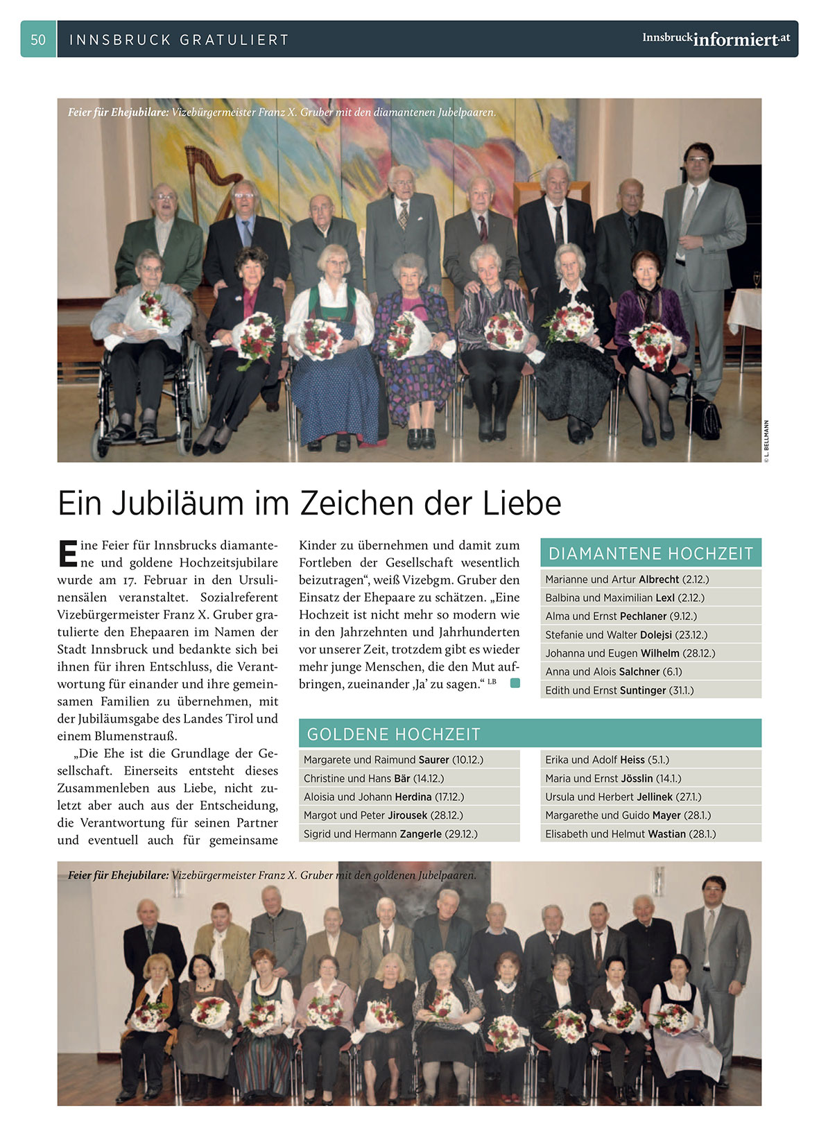 ine Feier für Innsbrucks diamantene und goldene Hochzeitsjubilare