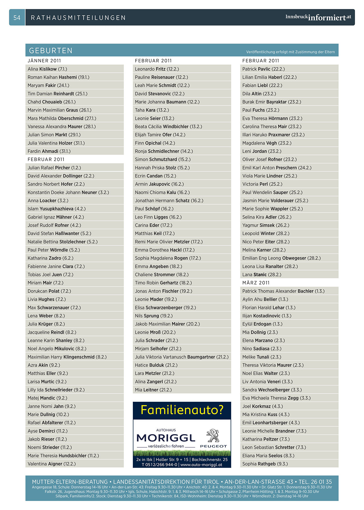 mutter-eltern-beratung • landessanitätsdirektion für tirol • An-der-Lan-StraSSe 43 • Tel. 26 01 35