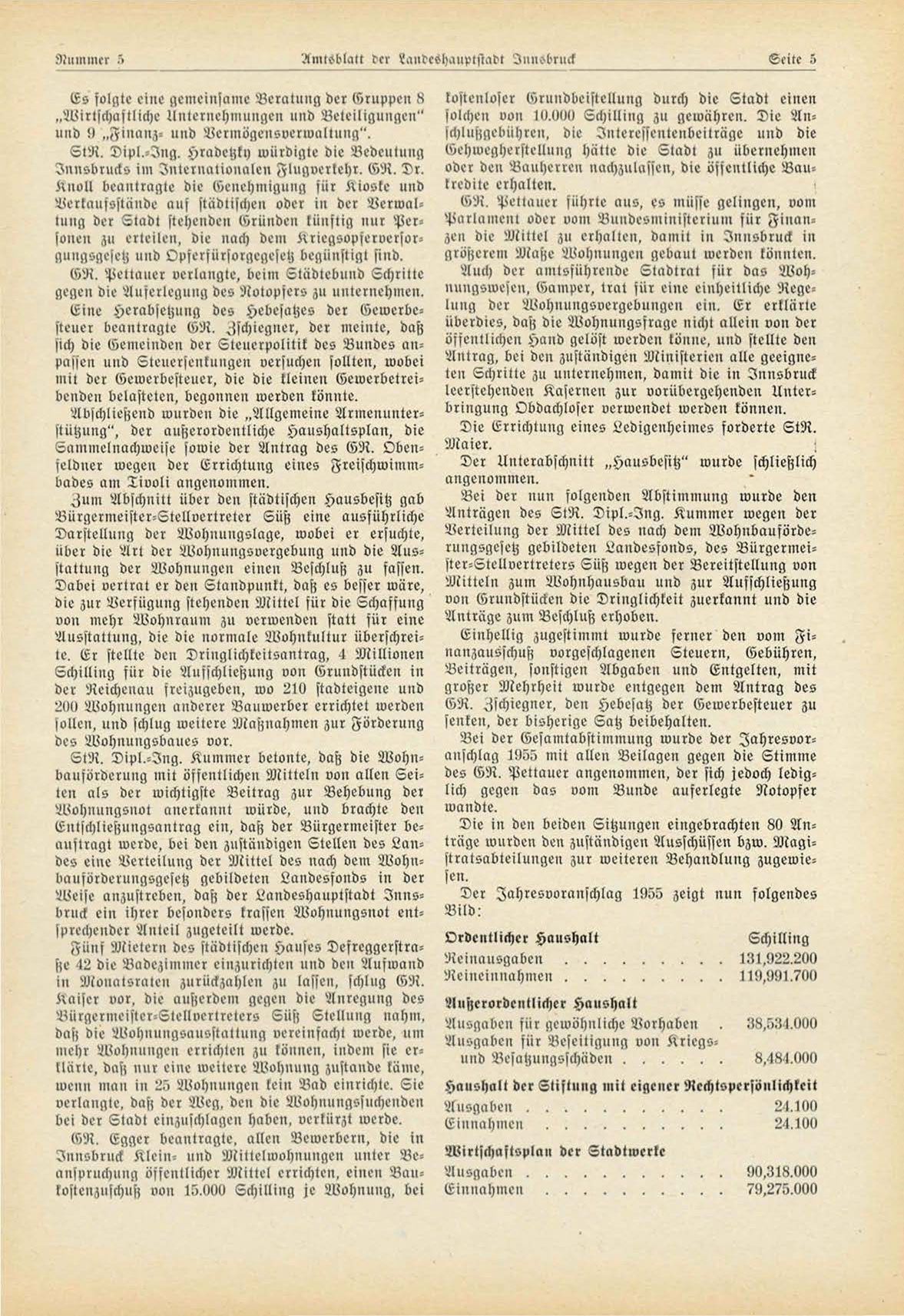 Der Iahresvoranschlag 1955 zeigt nun folgendes