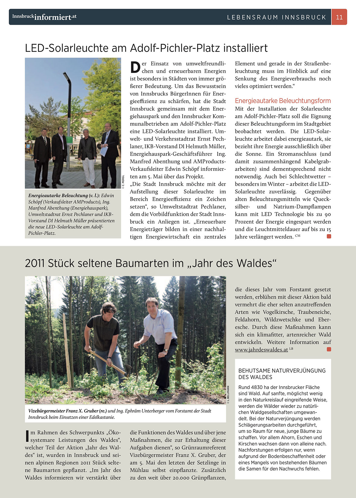 welcher Teil der Aktion „Jahr des Waldes“ ist, wurden in Innsbruck und seinen alpinen Regionen 2011 Stück seltene Baumarten gepflanzt. „Im Jahr des