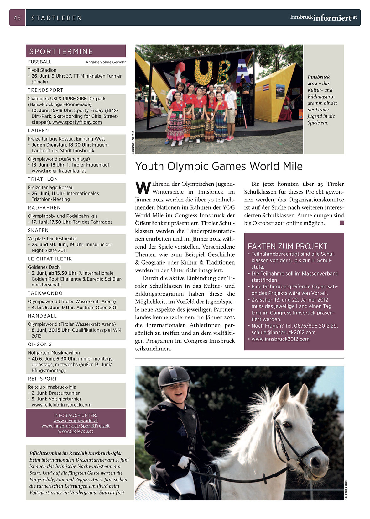 ährend der Olympischen JugendWinterspiele in Innsbruck im