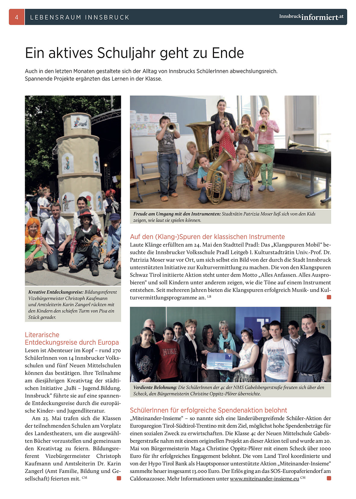 Auch in den letzten Monaten gestaltete sich der Alltag von Innsbrucks SchülerInnen abwechslungsreich.