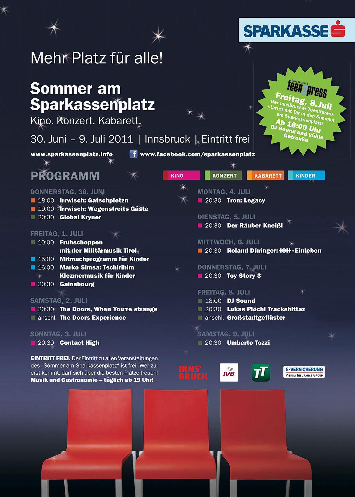 des „Sommer am Sparkassenplatz“ ist frei. Wer zuerst kommt, darf sich über die besten Plätze freuen!