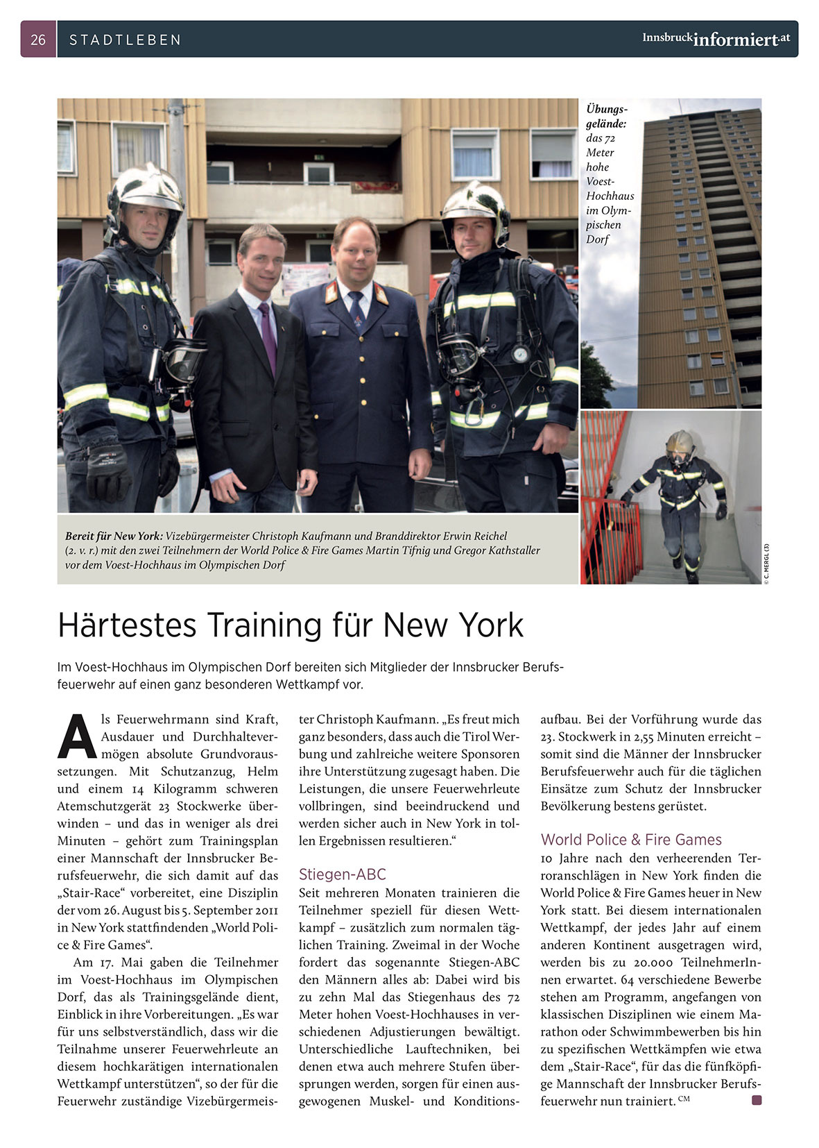 dem „Stair-Race“, für das die fünfköpfige Mannschaft der Innsbrucker Berufsfeuerwehr nun trainiert. CM