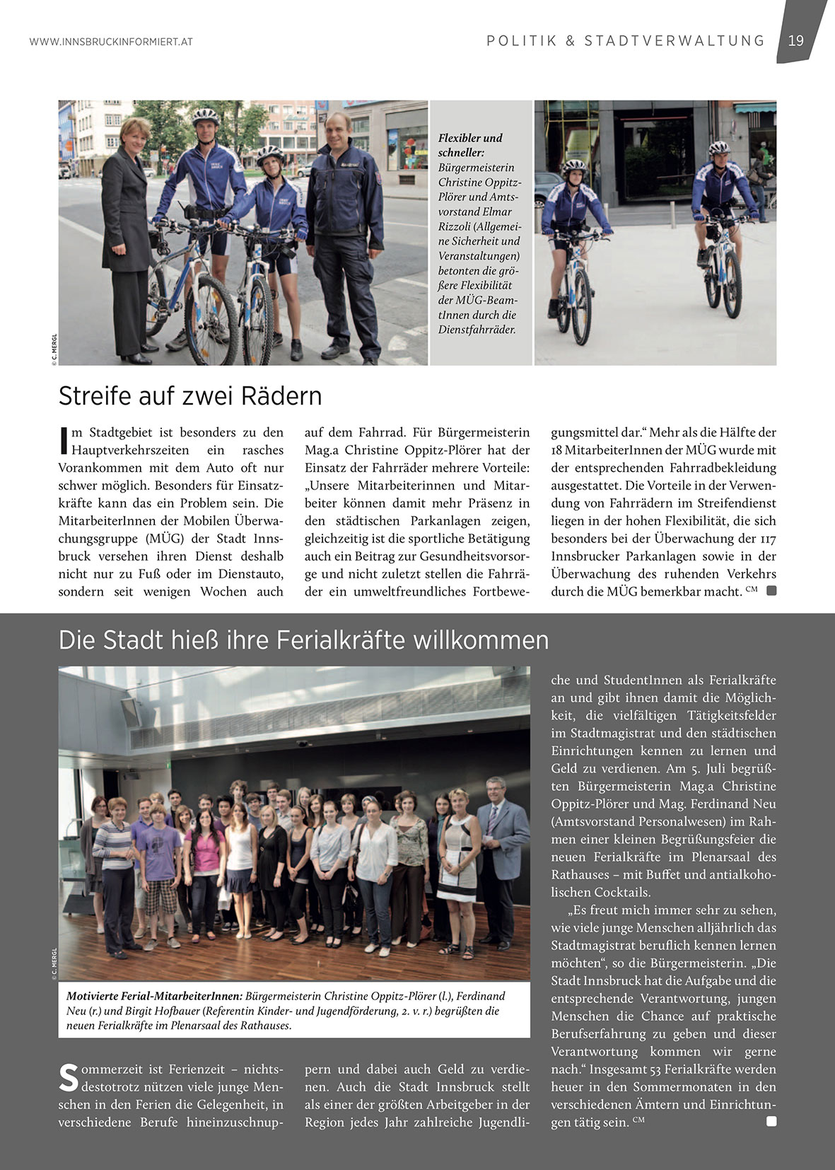 MitarbeiterInnen der Mobilen Überwachungsgruppe (MÜG) der Stadt Innsbruck versehen ihren Dienst deshalb