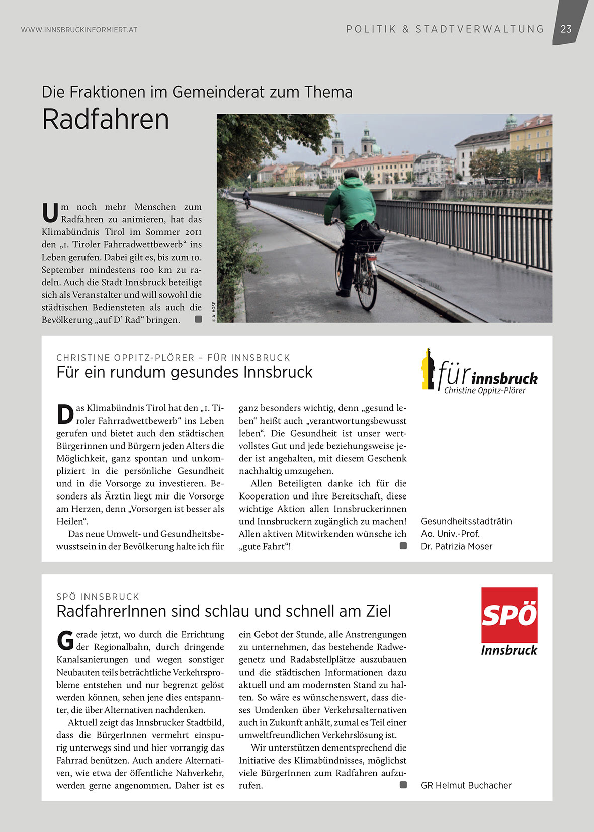 September mindestens 100 km zu radeln. Auch die Stadt Innsbruck beteiligt