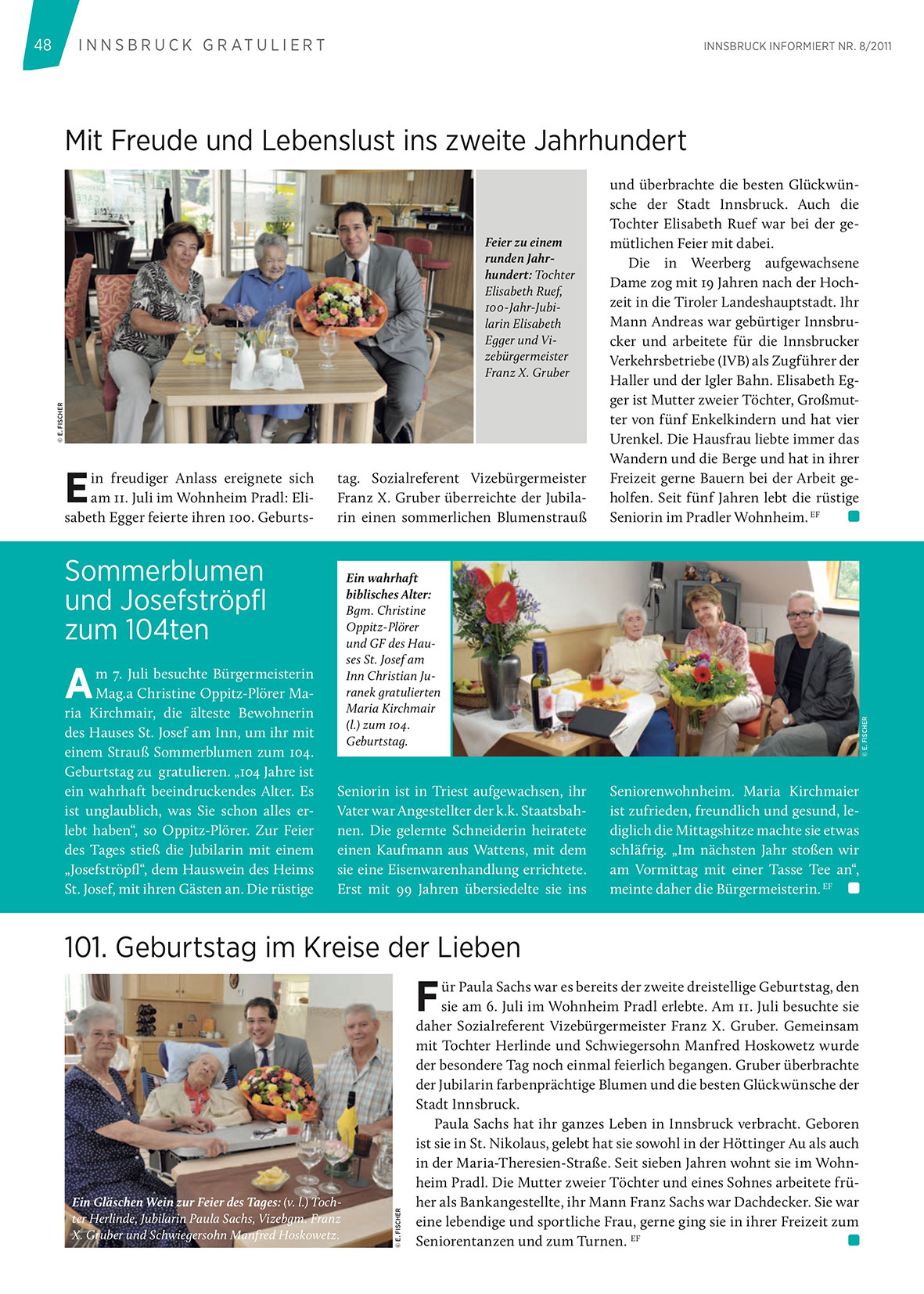 und überbrachte die besten Glückwünsche der Stadt Innsbruck. Auch die