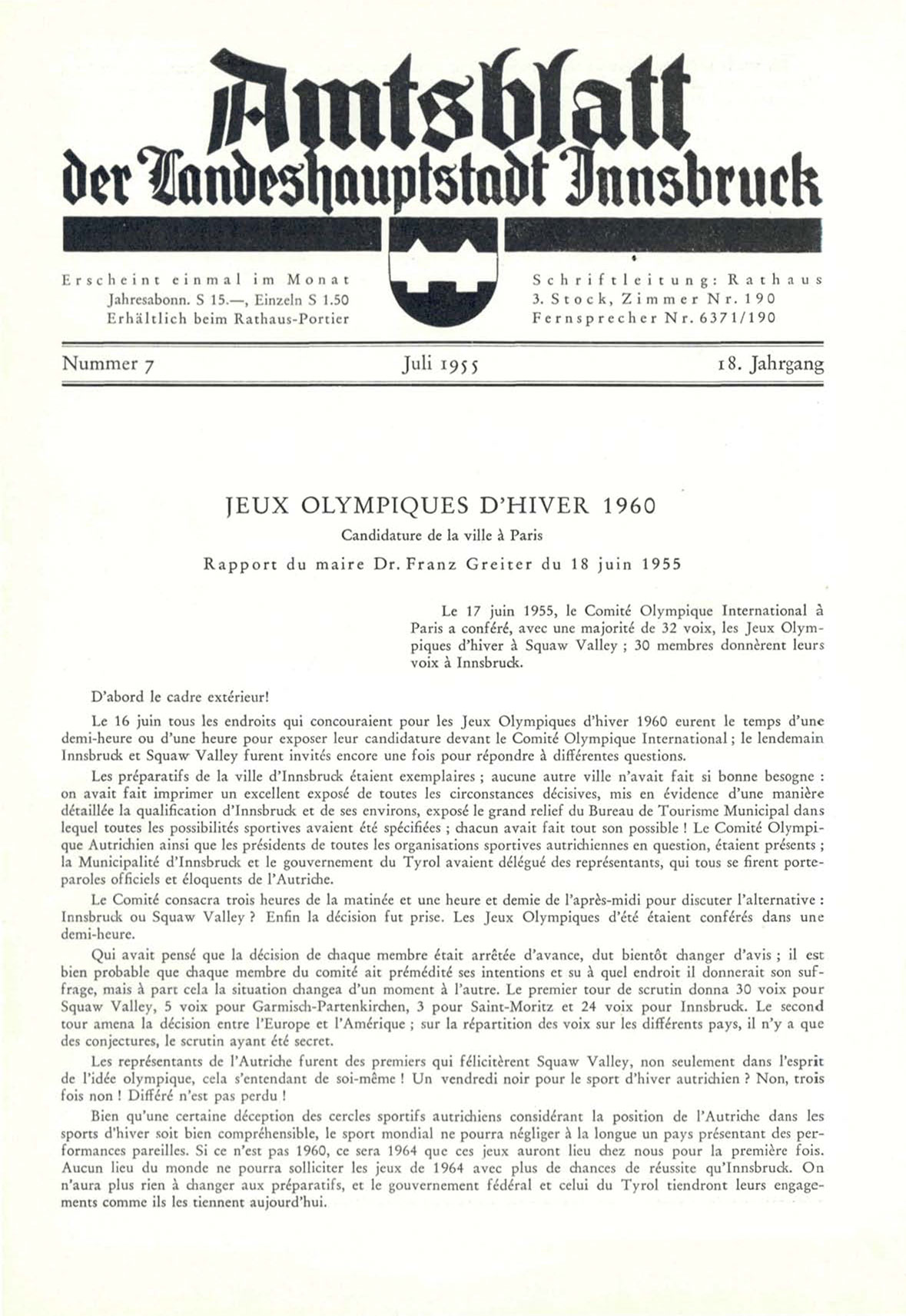Le 17 )uin 1955, le domite Olvrnpique International 2
