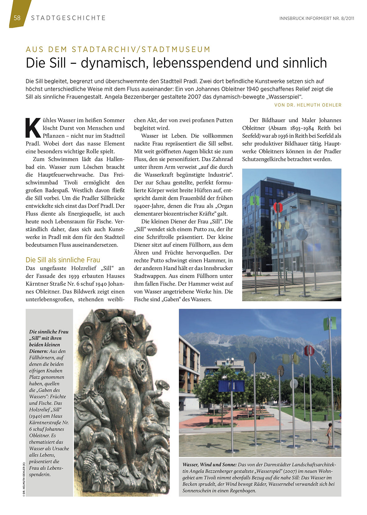 heute noch Lebensraum für Fische. Verständlich daher, dass sich auch Kunstwerke in Pradl mit dem für den Stadtteil