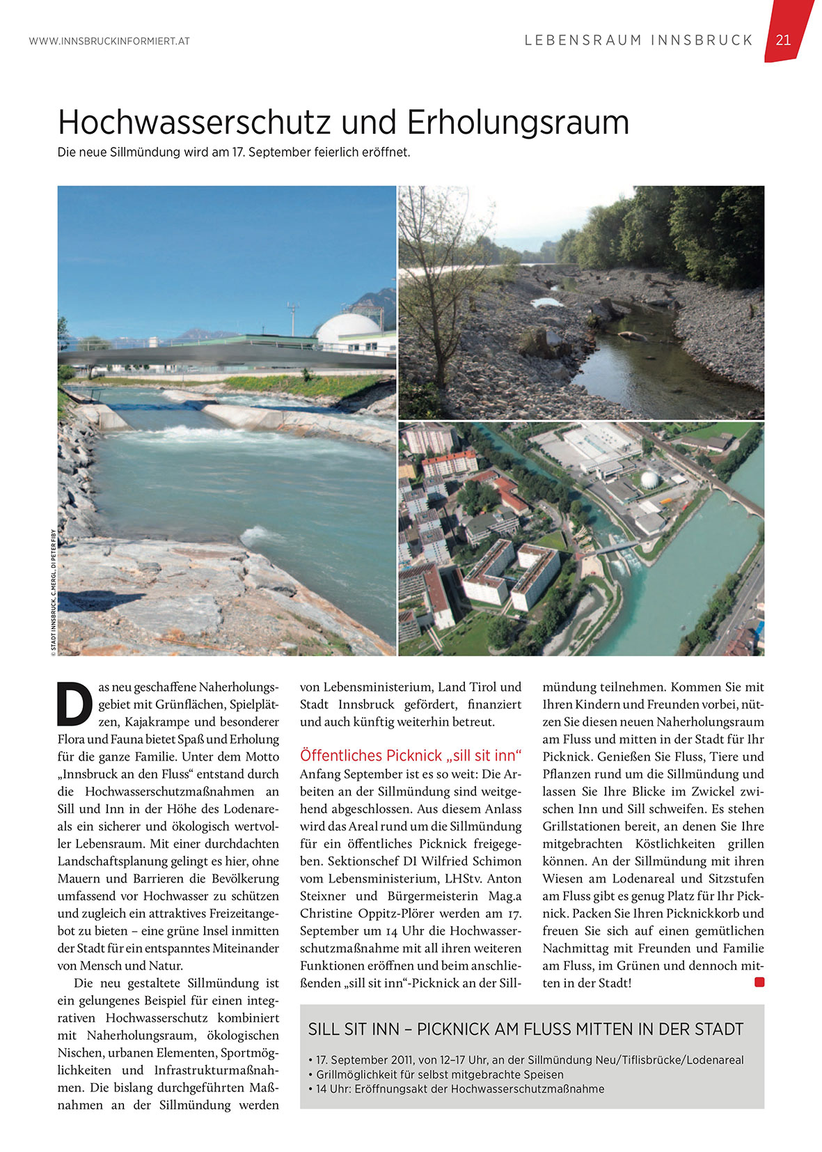 Sill und Inn in der Höhe des Lodenareals ein sicherer und ökologisch wertvoller Lebensraum. Mit einer durchdachten