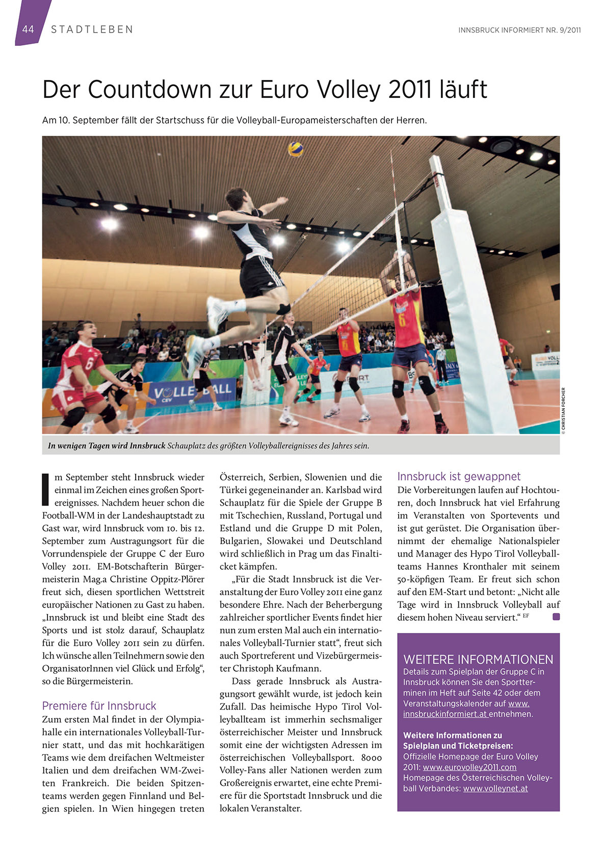 „Für die Stadt Innsbruck ist die Veranstaltung der Euro Volley 2011 eine ganz